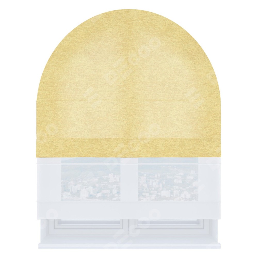 Римская штора день-ночь производителя «Cortin», используется для арочного проёма, пошита из двух полотен, с лицевой стороны софт однотонный золотой артикул 42934, вторая ткань тюль (по стандарту комплектуется тюль белого цвета артикул V-01). Штора шьётся по индивидуальным размерам, для данного типа римской шторы возможная ширина от 60 до 300 см. Удобное управление каждой шторой отдельно.