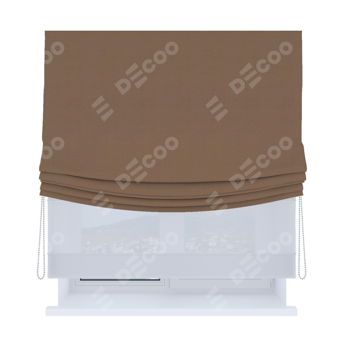 Римская штора день-ночь производителя «Cortin», используется для проёма, пошита из двух полотен, с лицевой стороны блэкаут однотонный коричневый артикул 88285, вторая ткань тюль (по стандарту комплектуется тюль белого цвета артикул V-01). Имеет универсальный механизм и подходит для монтажа: на потолок, на стену и в нишу. Удобное управление каждой шторой отдельно.