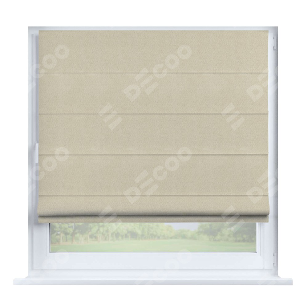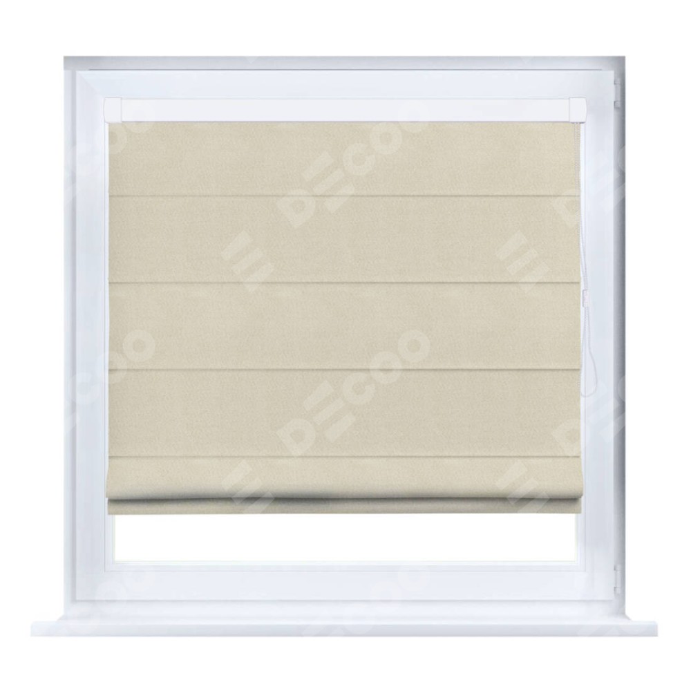 Римская штора производителя «Cortin», устанавливается на створку окна, пошита из ткани блэкаут однотонный бежевый, артикул 13125. Штора шьётся по индивидуальным размерам, для данного типа римской шторы возможная ширина от 35 до 150 см., высота до 250 см.