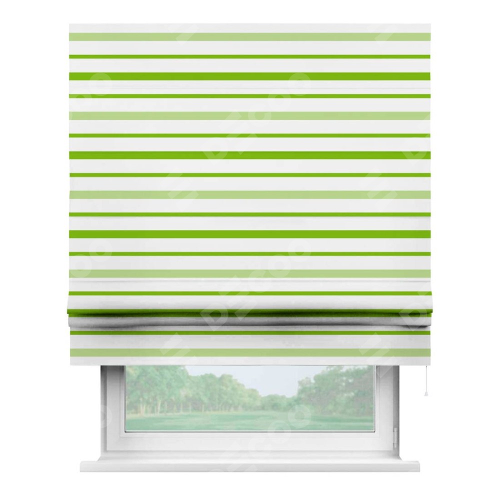 Римская штора «Кортин» для проема «Зелёные горизонтальные полоски»