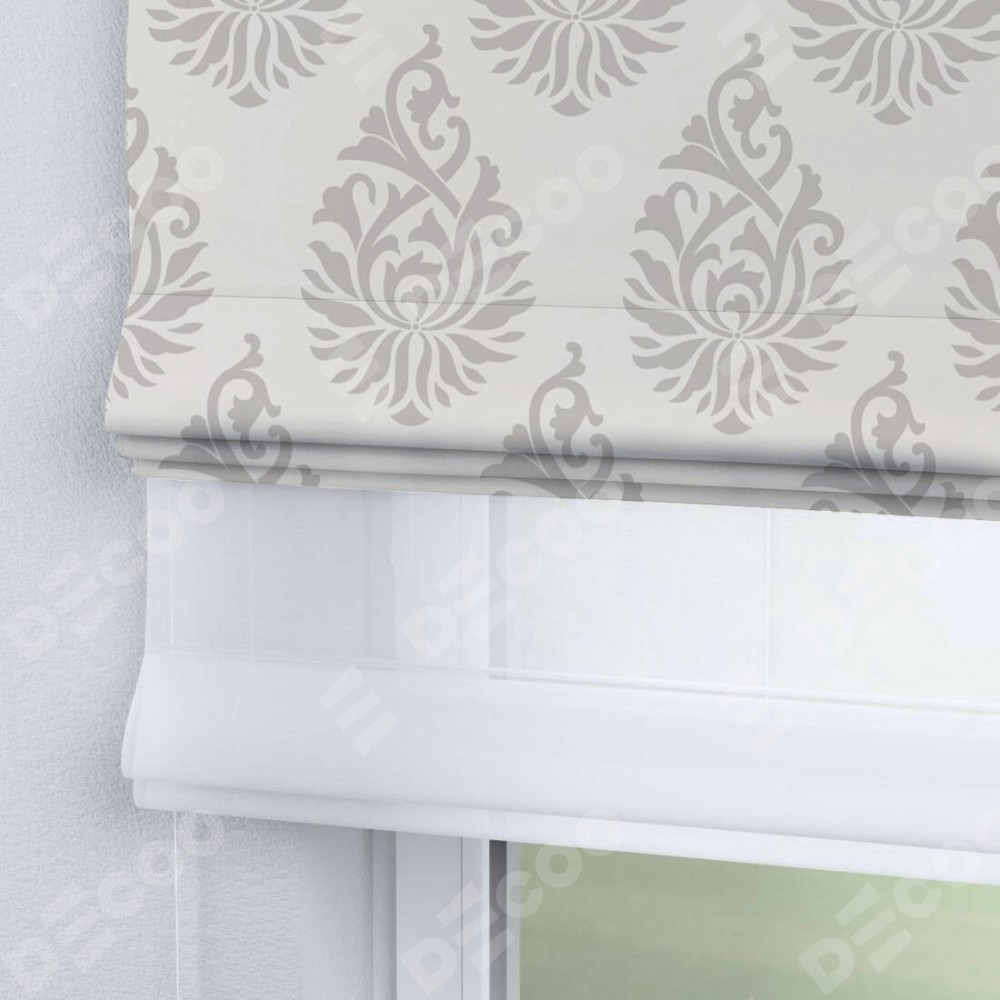 Римская штора день-ночь производителя «Cortin», используется для проёма, пошита из двух полотен, с лицевой блэкаут с нанесением сублимационной печати «Изящный кулон», вторая ткань тюль (по стандарту комплектуется тюль белого цвета артикул V-01). Имеет универсальный механизм и подходит для монтажа: на потолок, на стену и в нишу.