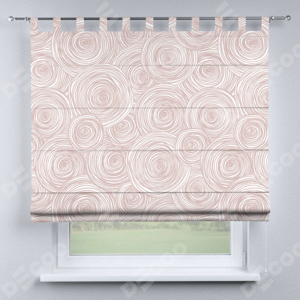 Римская штора производителя «Cortin», используется для проёма, пошита из ткани блэкаут с нанесением сублимационной печати «Бежевые круги». Данная модель пошита на петлях, комплектуется на выбор круглым карнизом и подходит для монтажа на стену. Римская штора на петлях имеет простую систему регулировки высоты, отличительным преимуществом данной модели является простой способ монтажа. Достаточно повесить ее на трубу и штора готова!