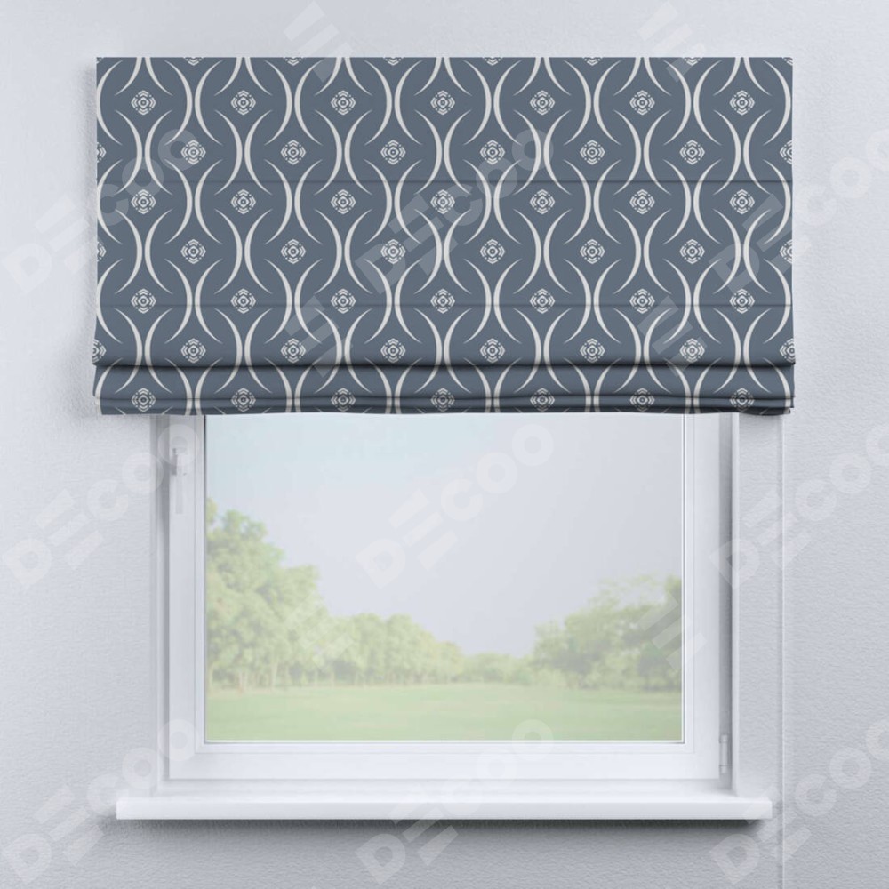 Римская штора производителя «Cortin», используется для проёма, пошита из ткани блэкаут с нанесением сублимационной печати «Воздушный узор серый». Имеет универсальный механизм и подходит для монтажа: на потолок, на стену и в нишу.