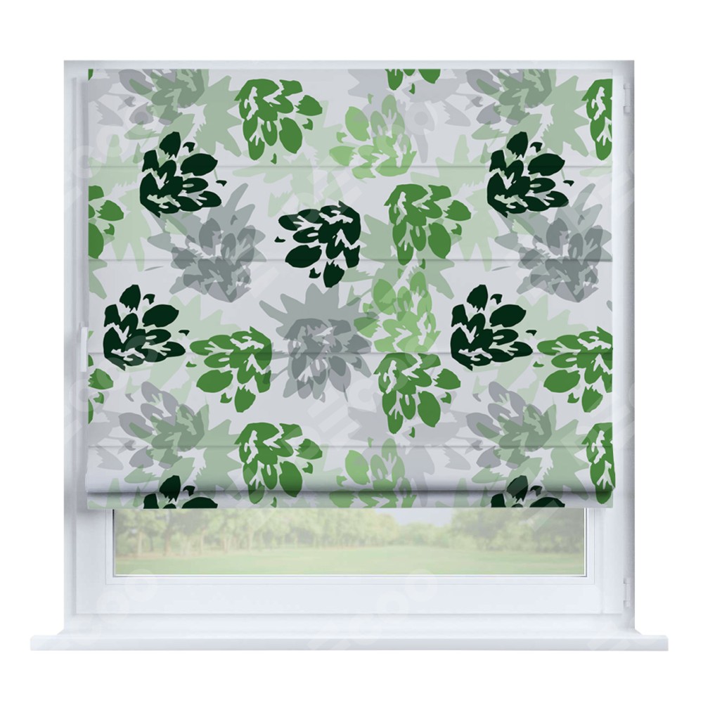 Римская штора производителя «Cortin», устанавливается на створку окна, пошита из ткани блэкаут с нанесением сублимационной печати «Зелёный луг». Штора шьётся по индивидуальным размерам, для данного типа римской шторы возможная ширина от 35 до 150 см., высота до 250 см.
