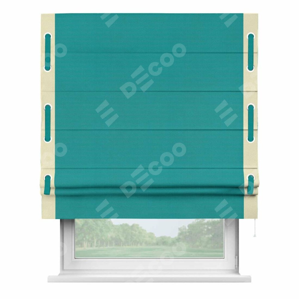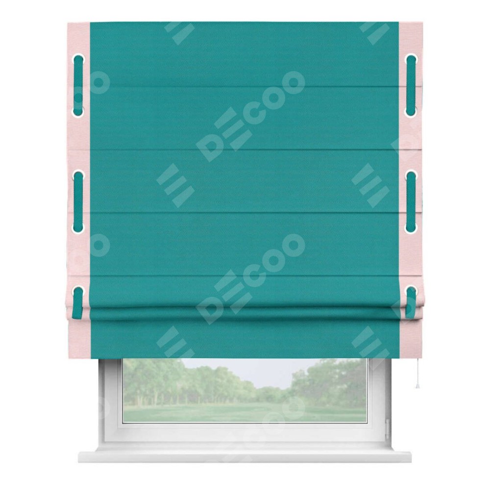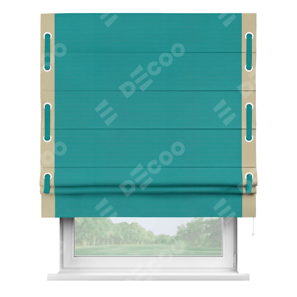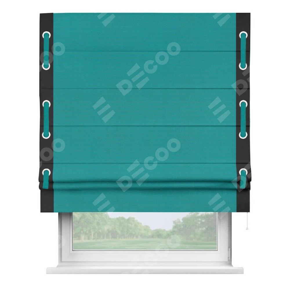 Римская штора «Кортин» с кантом Стрим Дуо (люверсы с пояском), для проема, ткань блэкаут однотонный бирюзовый