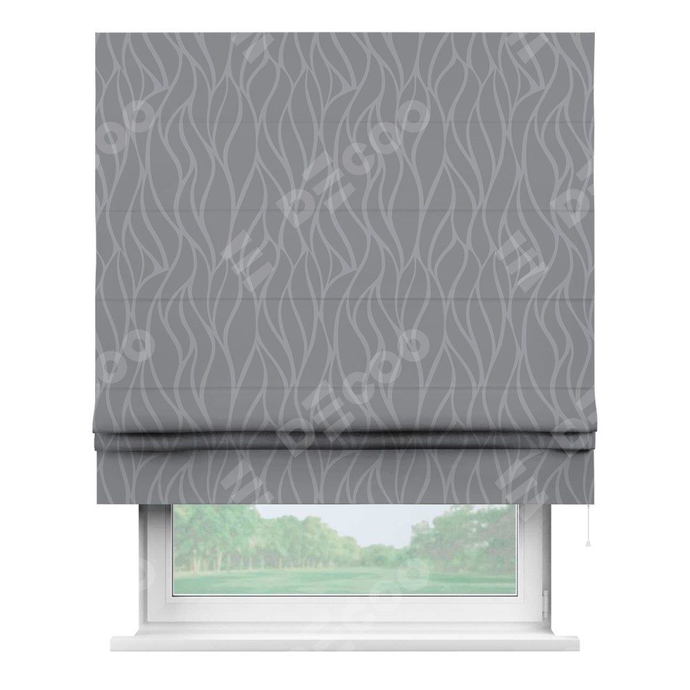 Римская штора производителя «Cortin», используется для проёма, пошита из ткани блэкаут с нанесением сублимационной печати «Саванна графит». Имеет универсальный механизм и подходит для монтажа: на потолок, на стену и в нишу.