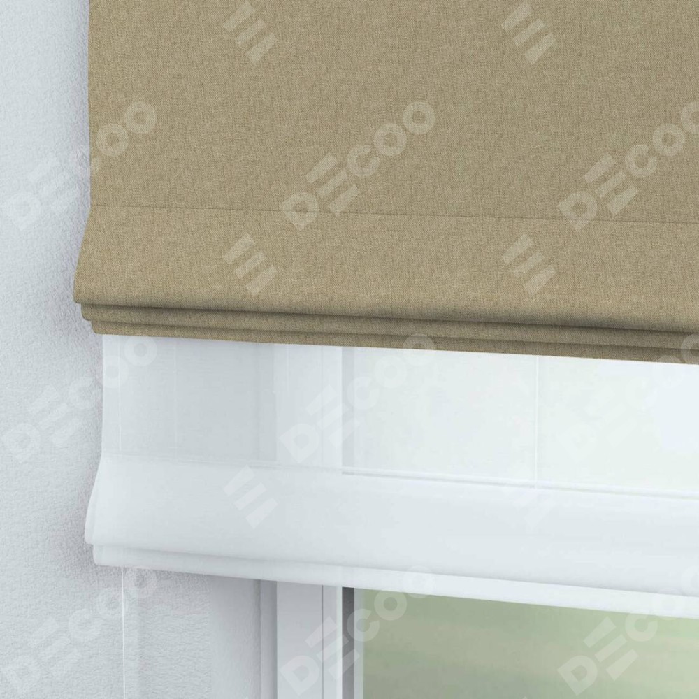Римская штора день-ночь производителя «Cortin», используется для проёма, пошита из двух полотен, с лицевой стороны стиф димаут бежевый артикул 18083, вторая ткань тюль (по стандарту комплектуется тюль белого цвета артикул V-01). Имеет универсальный механизм и подходит для монтажа: на потолок, на стену и в нишу.