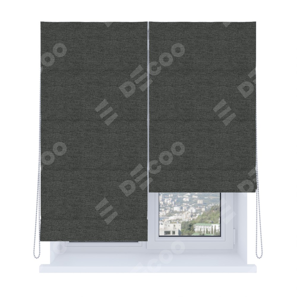 Римская штора производителя «Cortin», используется для проёма, пошита из ткани стиф димаут графит, артикул ткани 44026. Имеет универсальный механизм и подходит для монтажа: на потолок, на стену и в нишу. Удобное управление каждой шторой отдельно.