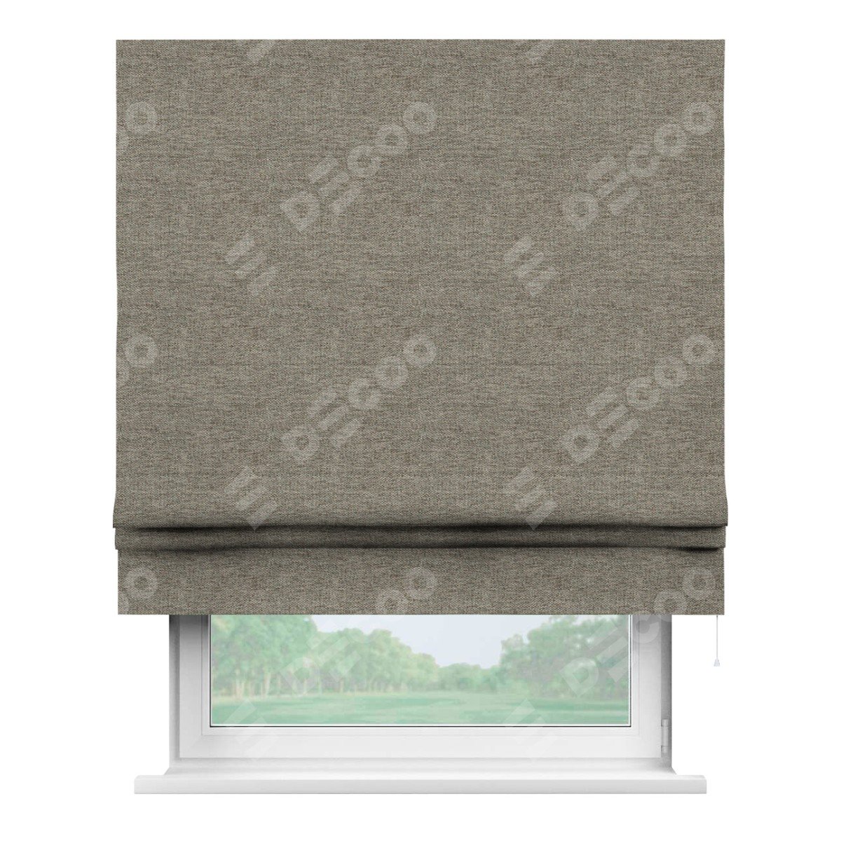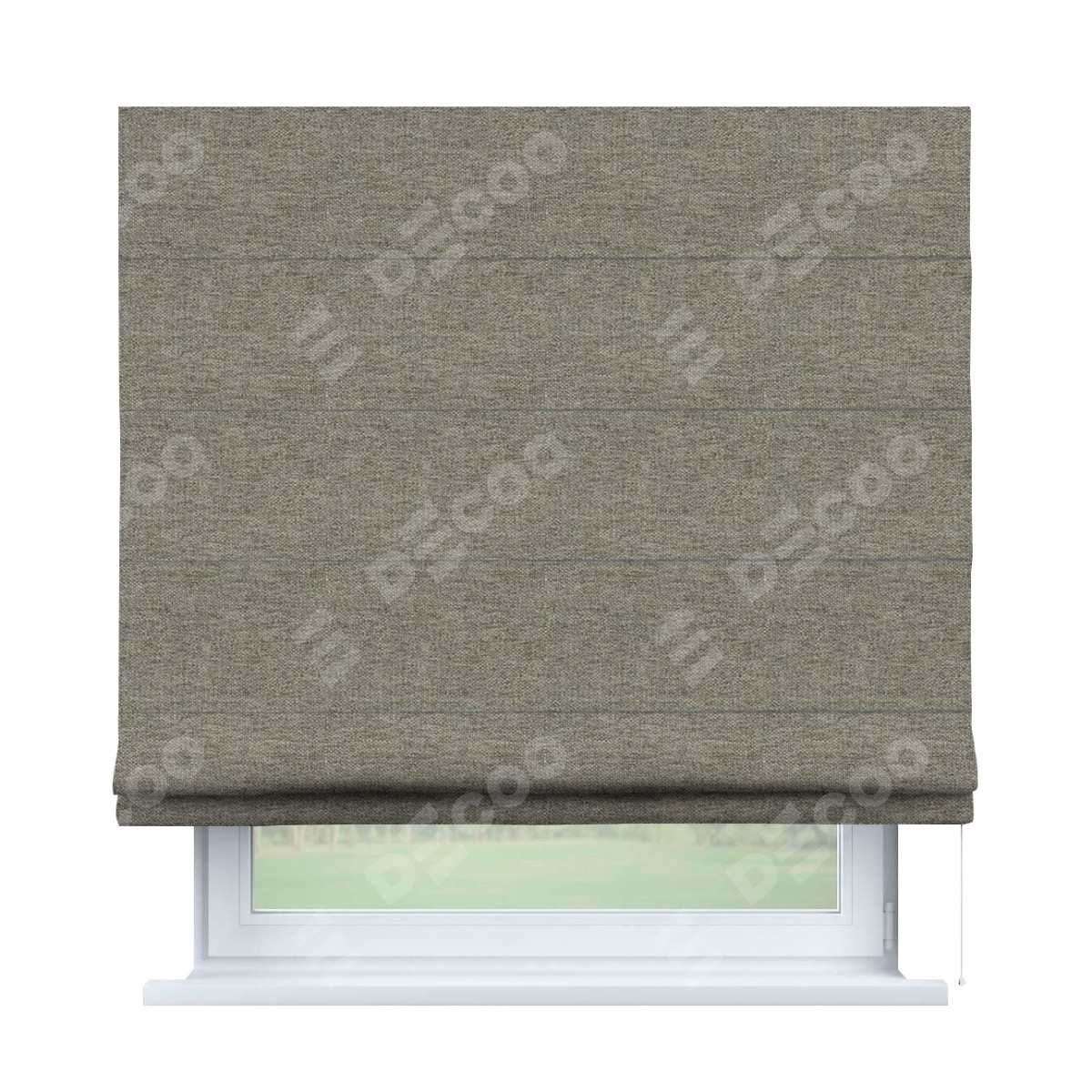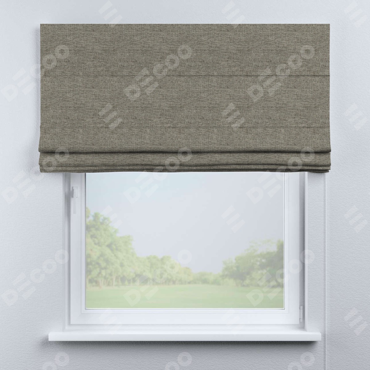 Римская штора производителя «Cortin», используется для проёма, пошита из ткани стиф димаут серо-коричневый, артикул ткани 44028. Имеет универсальный механизм и подходит для монтажа: на потолок, на стену и в нишу.