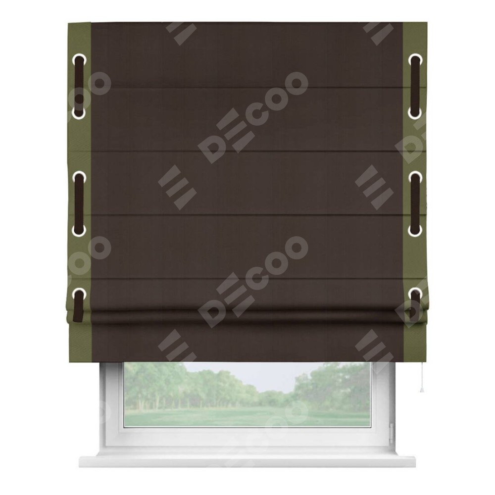 Римская штора «Кортин» с кантом Стрим Дуо (люверсы с пояском), для проема, ткань блэкаут однотонный венге