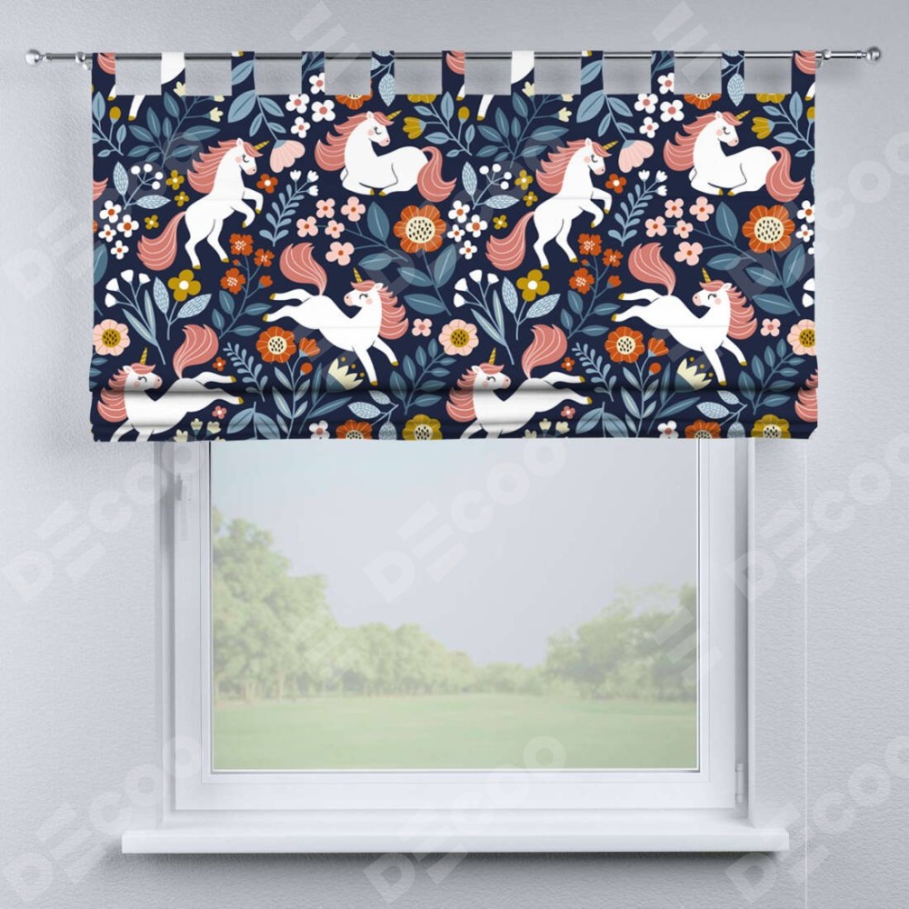Римская штора на петлях «Цветы и единороги»