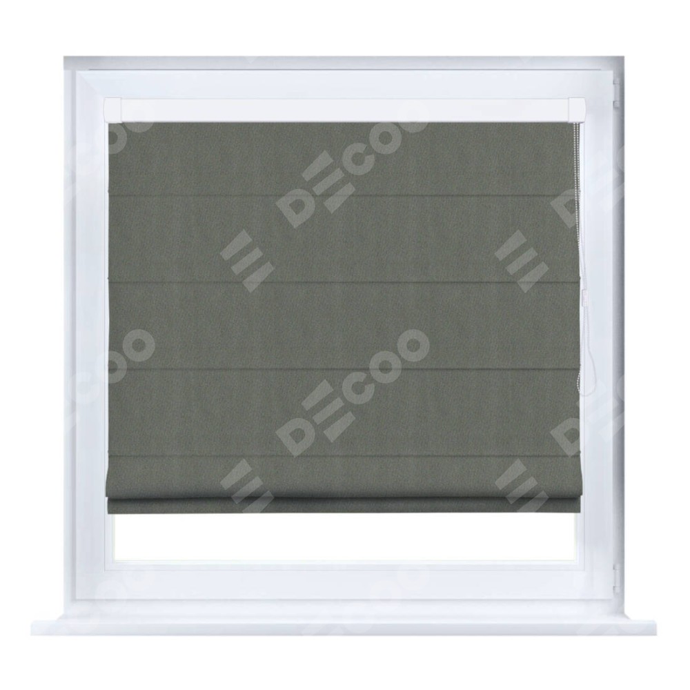 Римская штора производителя «Cortin», устанавливается на створку окна, пошита из ткани блэкаут однотонный тёмно-серый, артикул 29332−1. Штора шьётся по индивидуальным размерам, для данного типа римской шторы возможная ширина от 35 до 150 см., высота до 250 см.