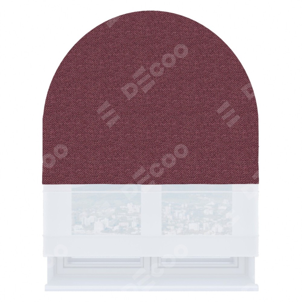 Римская штора день-ночь производителя «Cortin», используется для арочного проёма, пошита из двух полотен, с лицевой стороны лён димаут марсала артикул 1602, вторая ткань тюль (по стандарту комплектуется тюль белого цвета артикул V-01). Штора шьётся по индивидуальным размерам, для данного типа римской шторы возможная ширина от 60 до 300 см. Удобное управление каждой шторой отдельно.