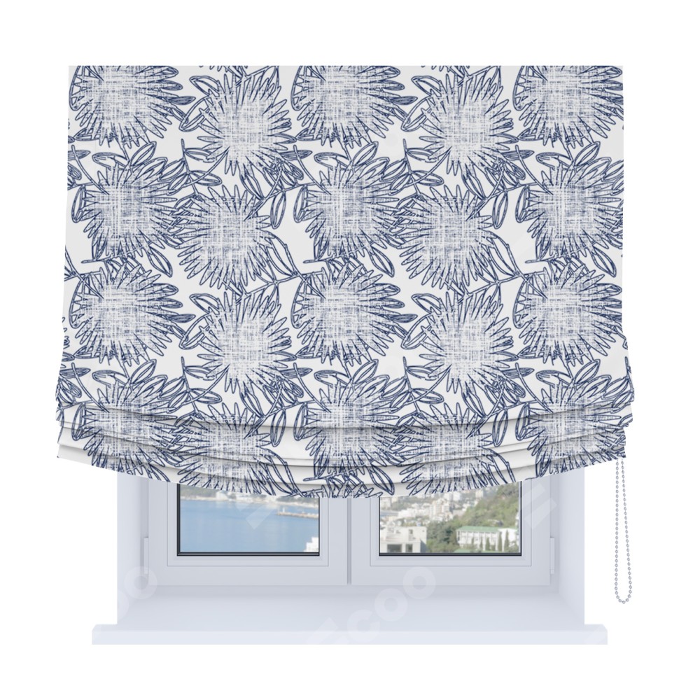 Римская штора Soft с мягкими складками, «Синий букет»