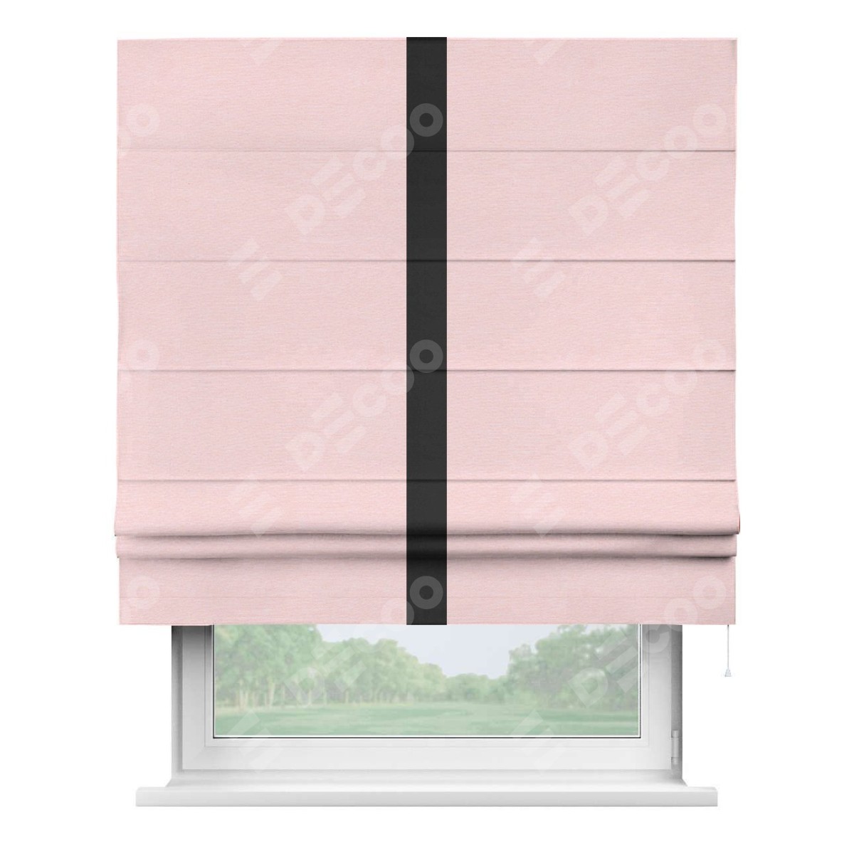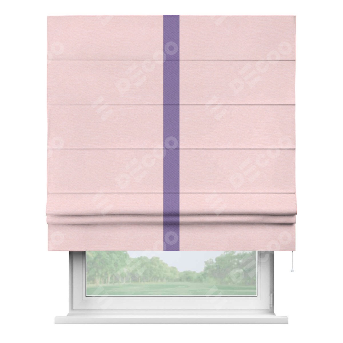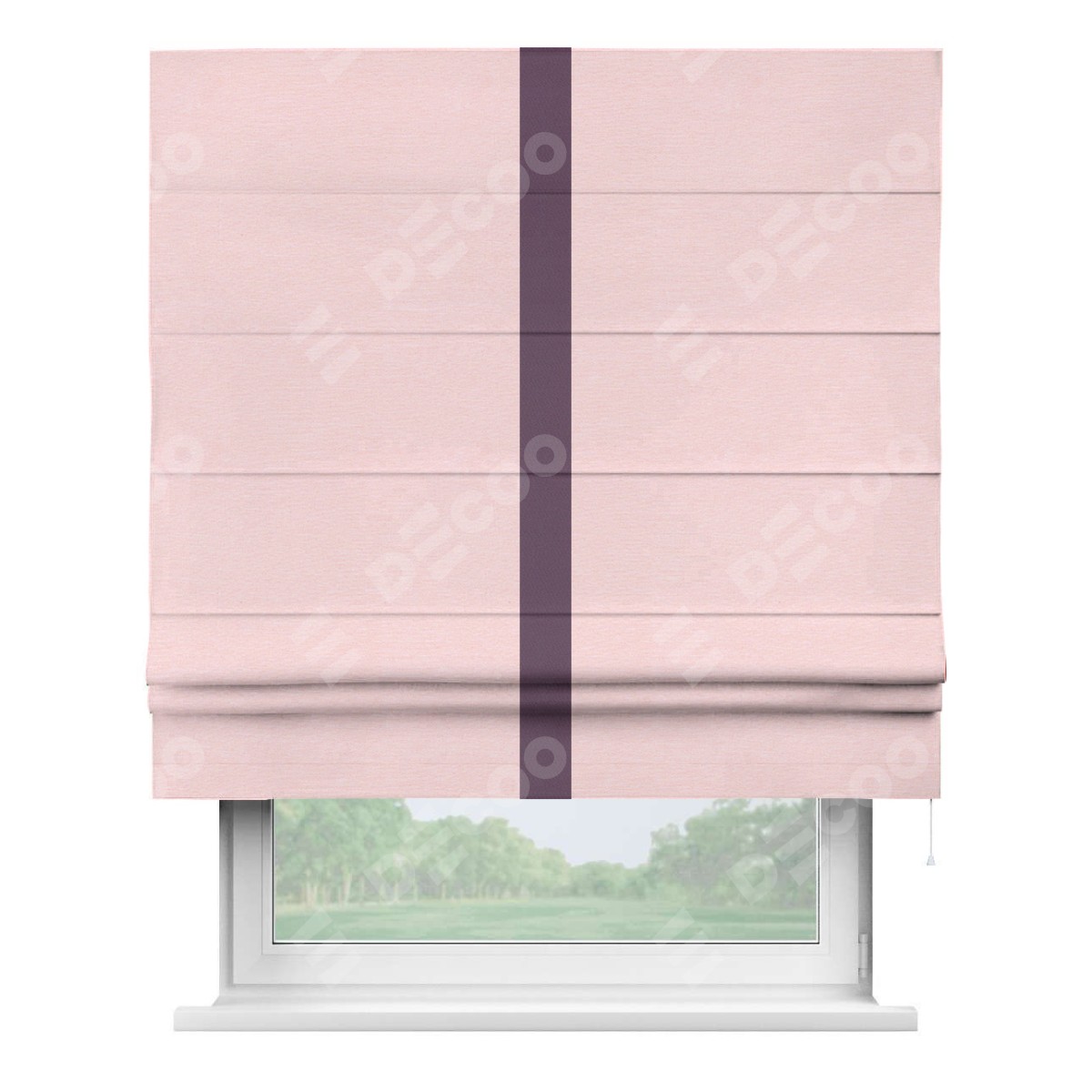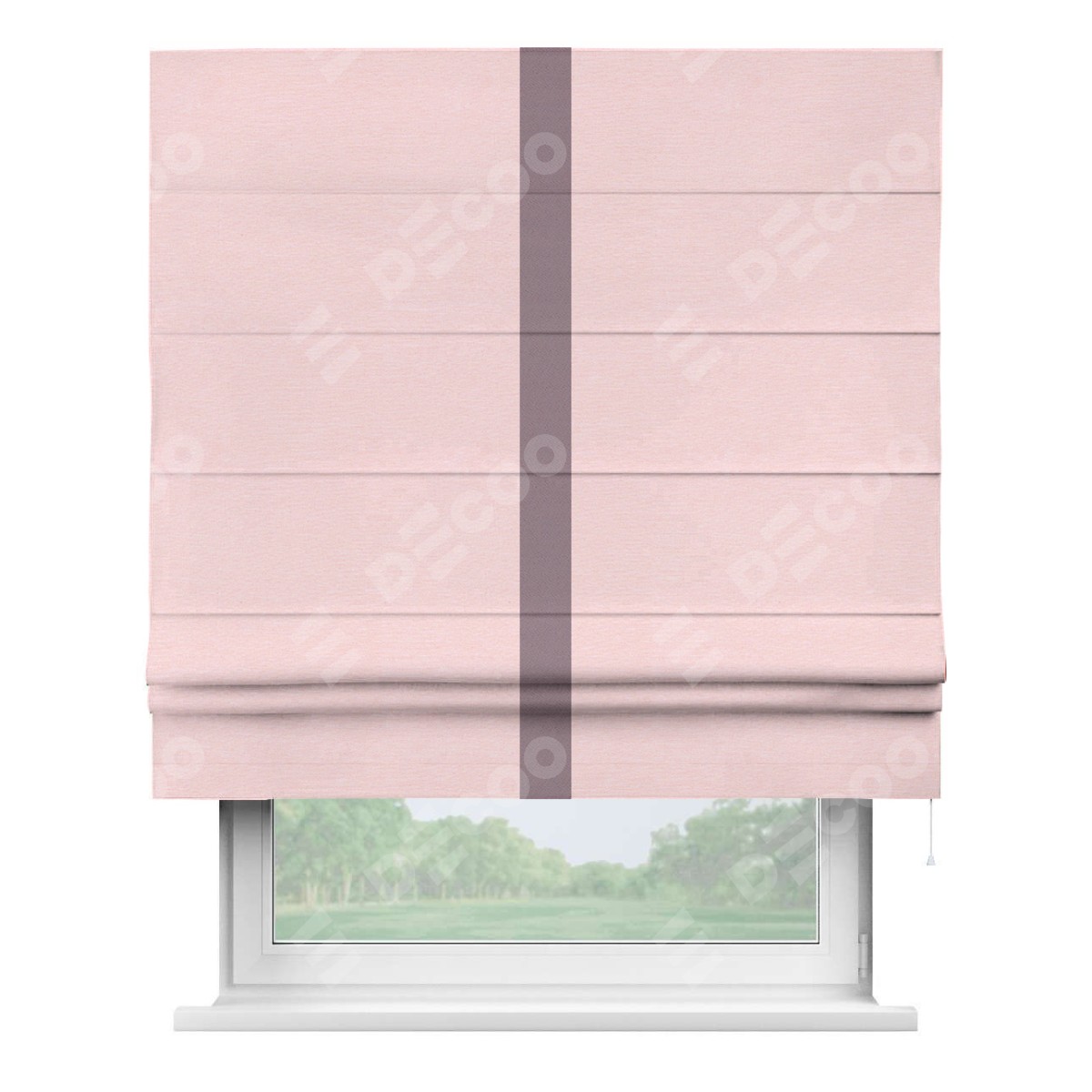 Римская штора производителя «Cortin», используется для проёма, пошита из ткани блэкаут однотонный розовый, артикул ткани 83046. Отделка шторы кантом «Хайвей», ткань для канта используется из блэкаута однотонного разной расцветки на выбор. Имеет универсальный механизм и подходит для монтажа: на потолок, на стену и в нишу.