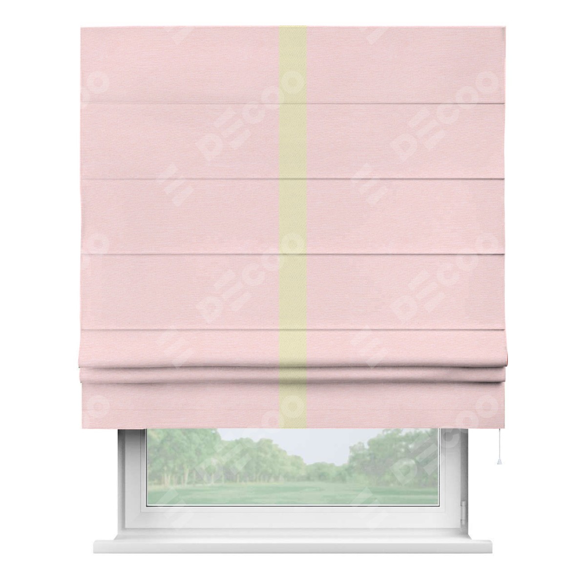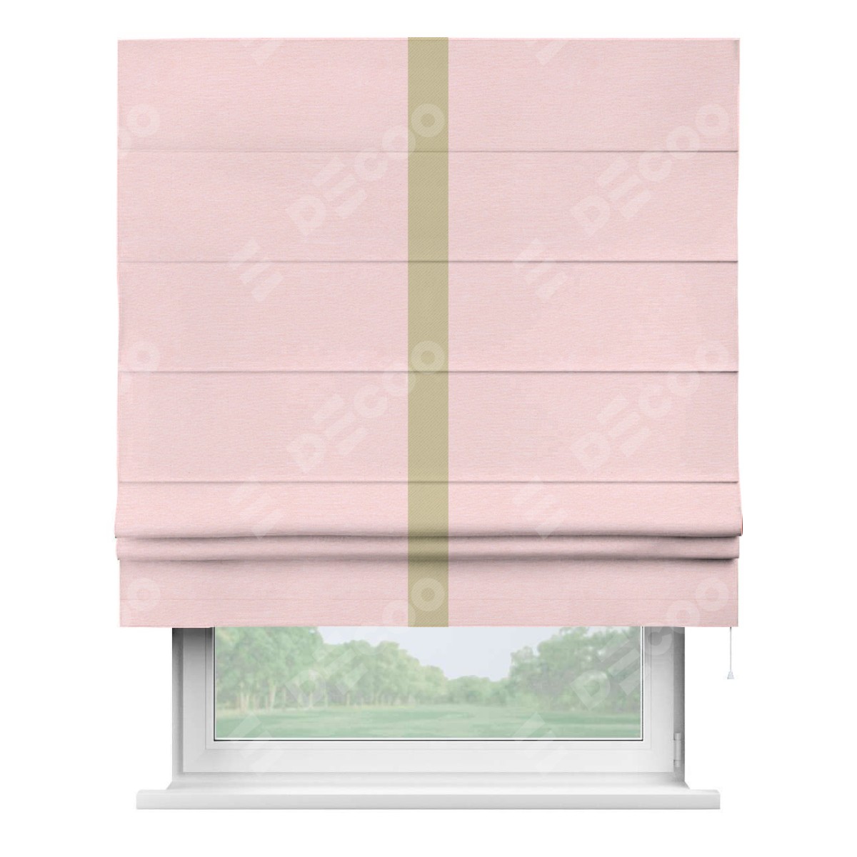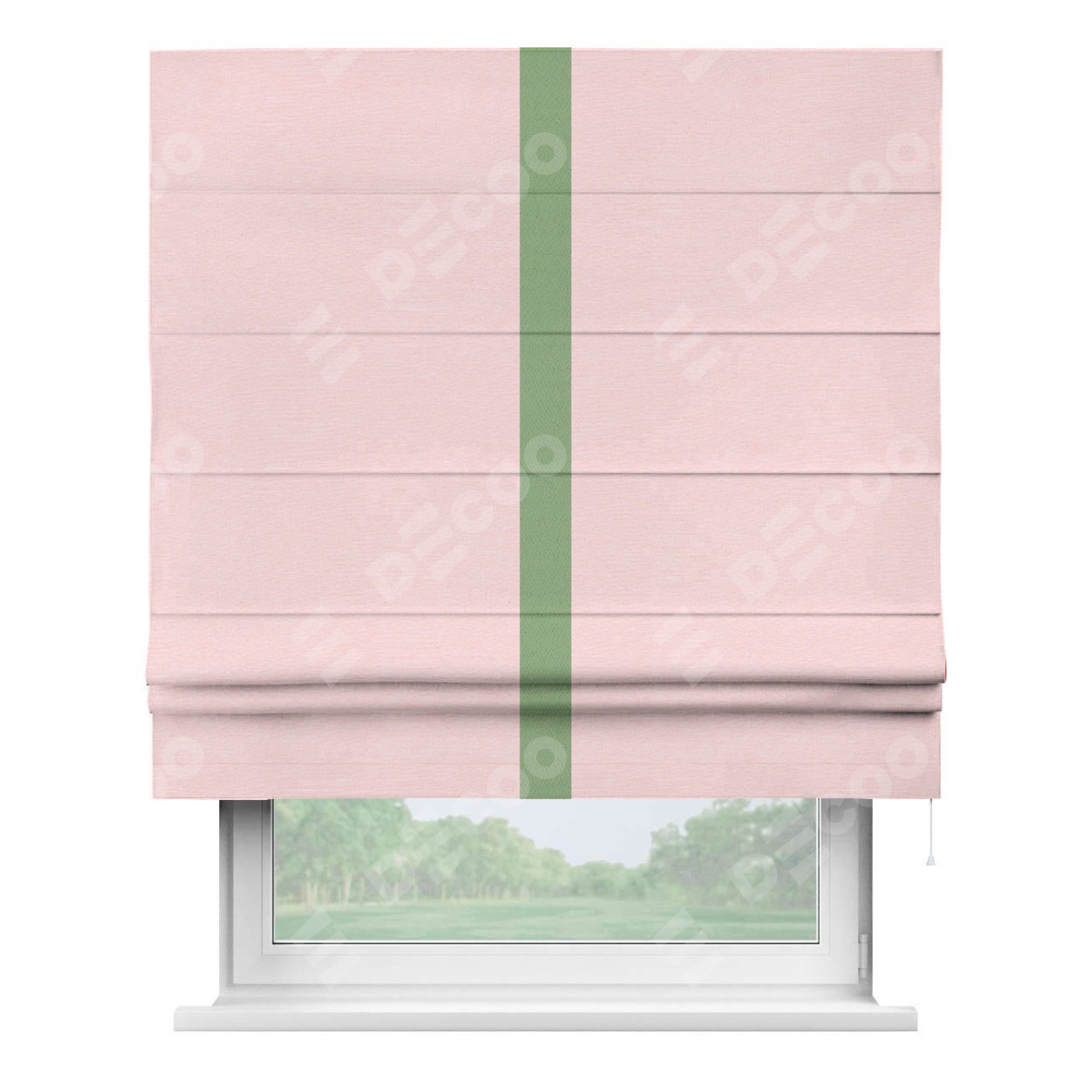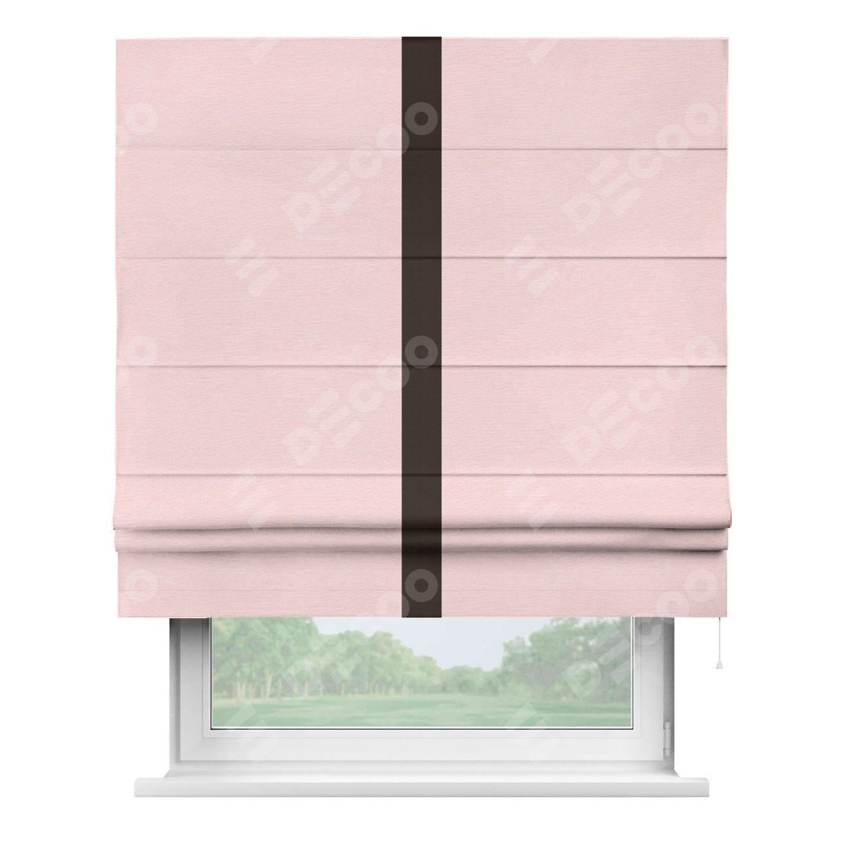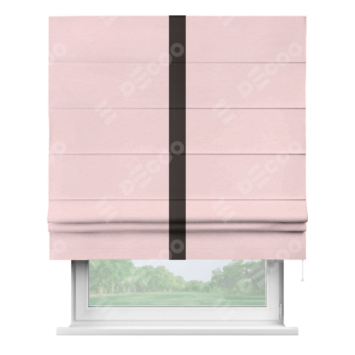 Римская штора производителя «Cortin», используется для проёма, пошита из ткани блэкаут однотонный розовый, артикул ткани 83046. Отделка шторы кантом «Хайвей», ткань для канта используется из блэкаута однотонного разной расцветки на выбор. Имеет универсальный механизм и подходит для монтажа: на потолок, на стену и в нишу.