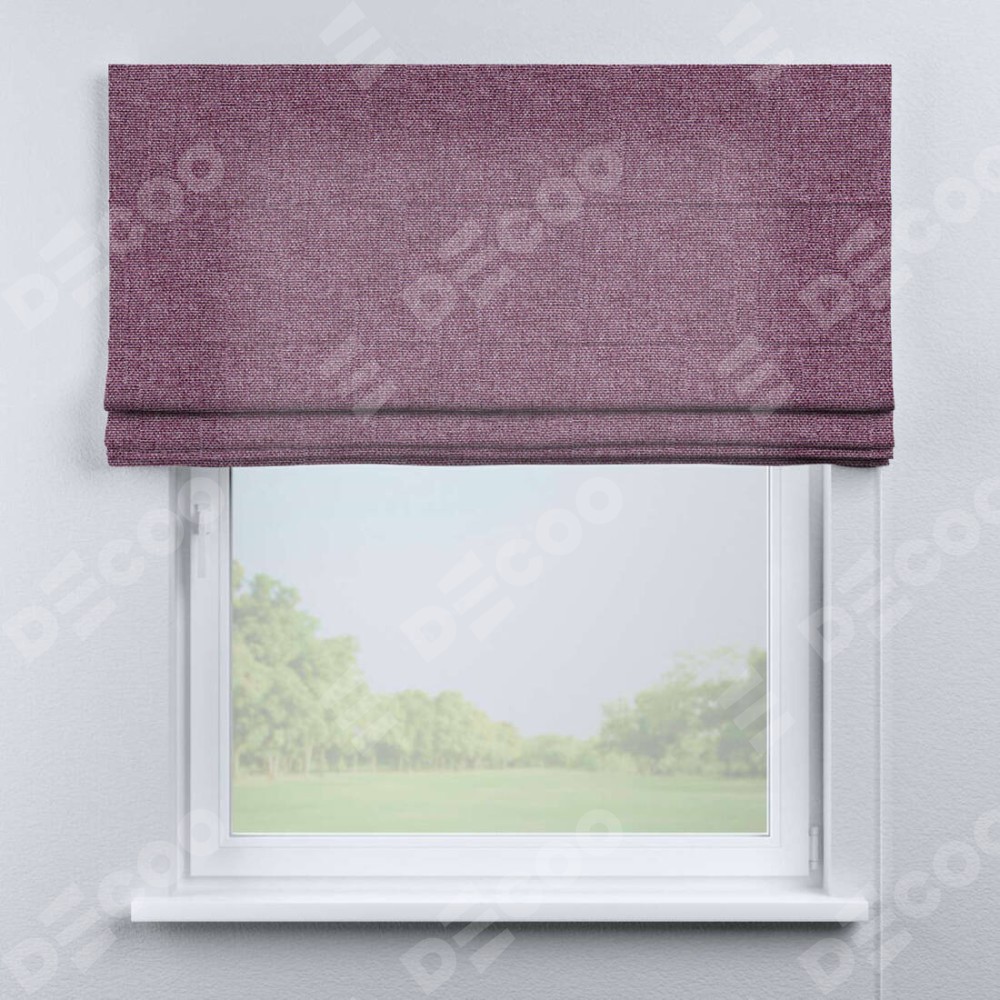 Римская штора производителя «Cortin», используется для проёма, пошита из ткани лён кашемир сиреневый, артикул ткани 21620. Имеет универсальный механизм и подходит для монтажа: на потолок, на стену и в нишу.