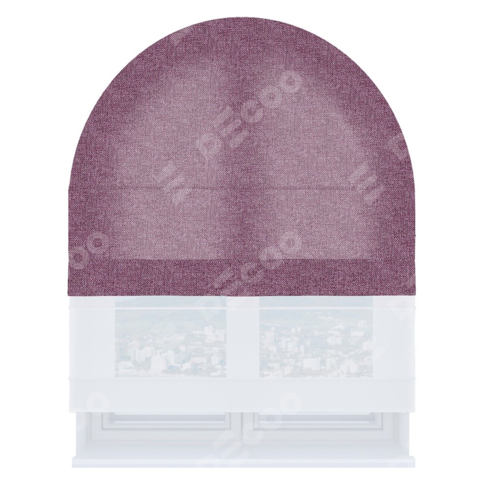Римская штора день-ночь производителя «Cortin», используется для арочного проёма, пошита из двух полотен, с лицевой стороны лён кашемир сиреневый артикул 21620, вторая ткань тюль (по стандарту комплектуется тюль белого цвета артикул V-01). Штора шьётся по индивидуальным размерам, для данного типа римской шторы возможная ширина от 60 до 300 см. Удобное управление каждой шторой отдельно.