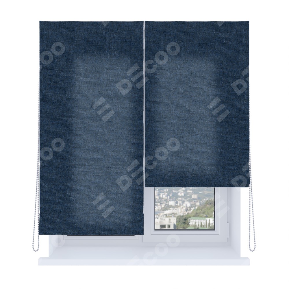 Римская штора производителя «Cortin», используется для проёма, пошита из ткани лён кашемир тёмно-синий, артикул ткани 17215. Имеет универсальный механизм и подходит для монтажа: на потолок, на стену и в нишу. Удобное управление каждой шторой отдельно.