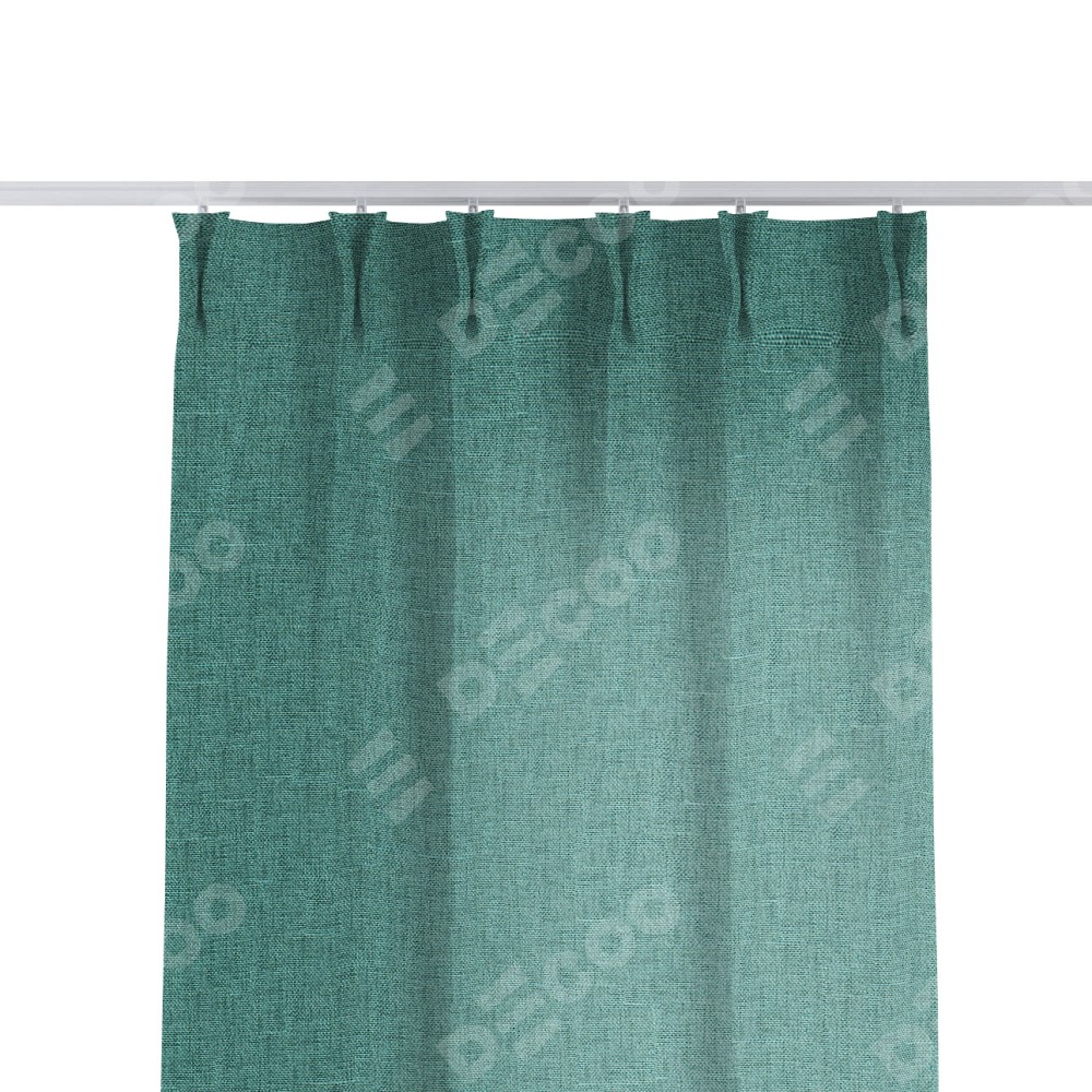 Комплект прямых штор, от производителя «Cortin», пошиты из ткани лён кашемир бирюзовый, артикул ткани 17214. С изнаночной стороны в верхней части штор пристрачивается шторная лента с декоративными складками «Кустик». Для создания элегантных складок прямые шторы шьются по стандарту с коэффициентом 1:2 (на 100 см. ширины проёма 200 см. ширины ткани).