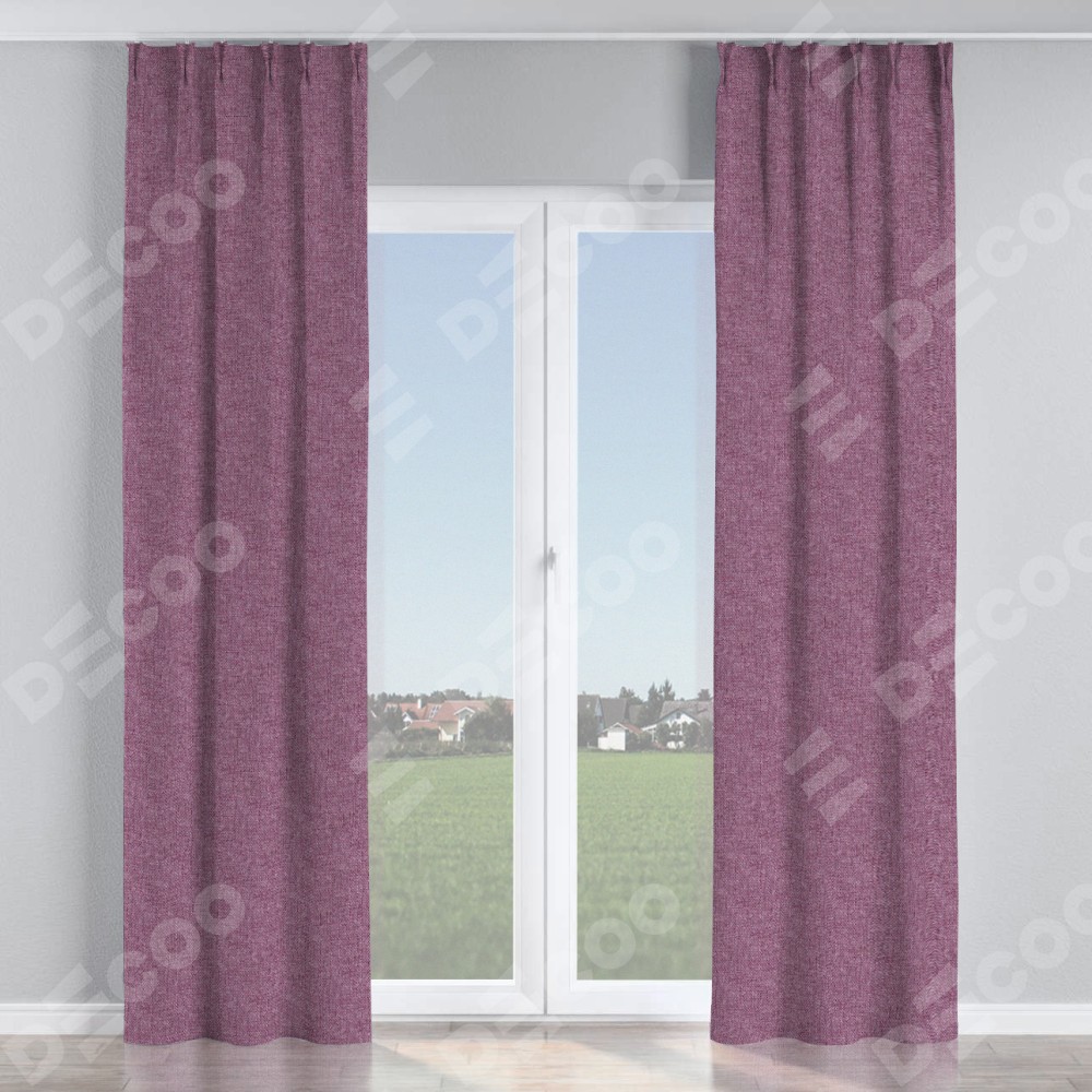 Комплект прямых штор, от производителя «Cortin», пошиты из ткани лён кашемир сиреневый, артикул ткани 21620. С изнаночной стороны в верхней части штор пристрачивается шторная лента с декоративными складками «Кустик». Для создания элегантных складок прямые шторы шьются по стандарту с коэффициентом 1:2 (на 100 см. ширины проёма 200 см. ширины ткани).