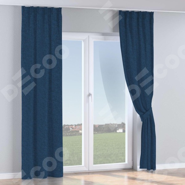 Комплект прямых штор, от производителя «Cortin», пошиты из ткани лён кашемир тёмно-синий, артикул ткани 17215. С изнаночной стороны в верхней части штор пристрачивается шторная лента с декоративными складками «Кустик». Для создания элегантных складок прямые шторы шьются по стандарту с коэффициентом 1:2 (на 100 см. ширины проёма 200 см. ширины ткани).
