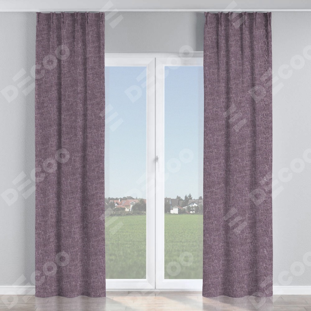 Комплект прямых штор, от производителя «Cortin», пошиты из ткани лён кашемир фиолетовый, артикул ткани 17211. С изнаночной стороны в верхней части штор пристрачивается шторная лента с декоративными складками «Кустик». Для создания элегантных складок прямые шторы шьются по стандарту с коэффициентом 1:2 (на 100 см. ширины проёма 200 см. ширины ткани).