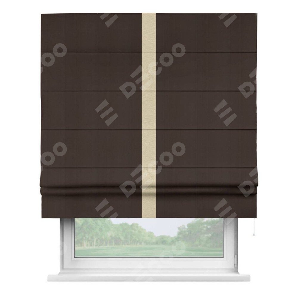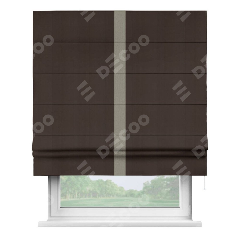 Римская штора «Кортин» с кантом Хайвэй, для проема, ткань блэкаут однотонный тёмно-коричневый