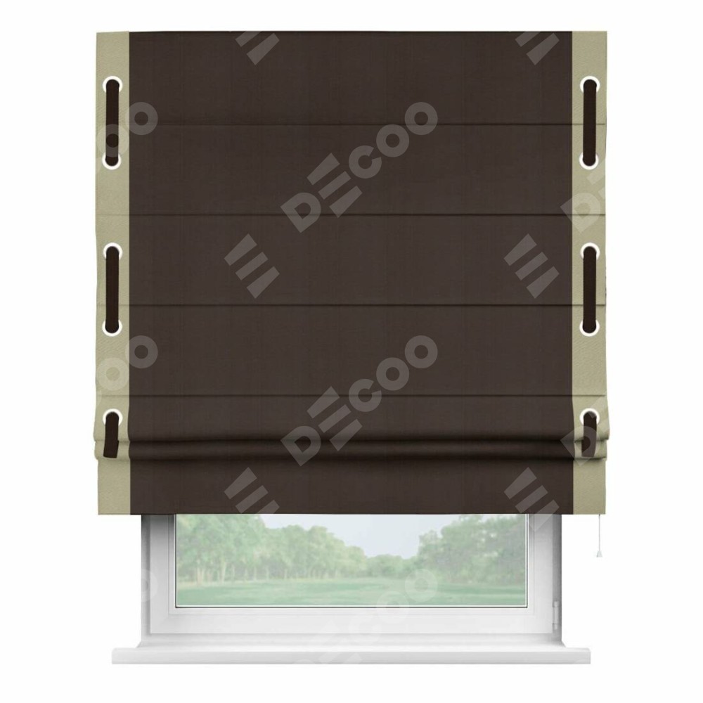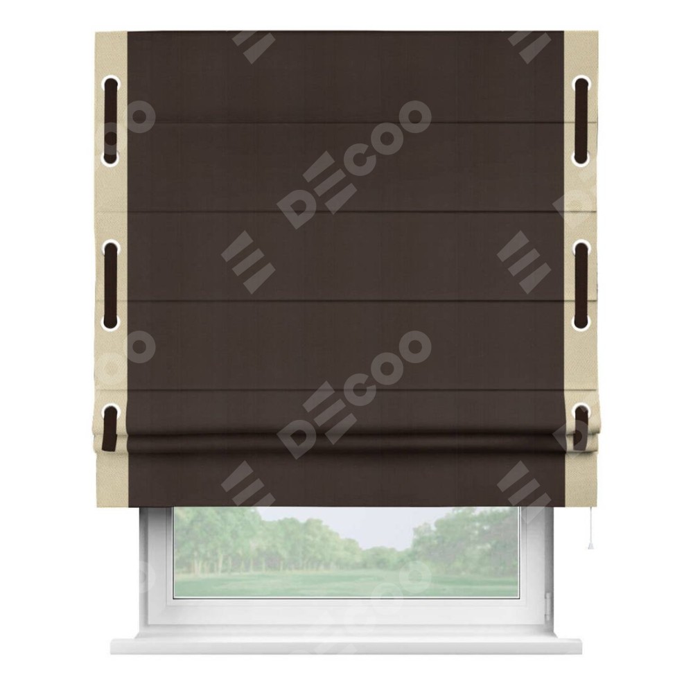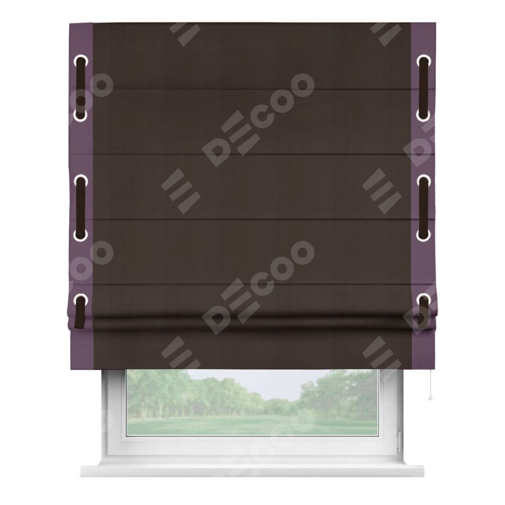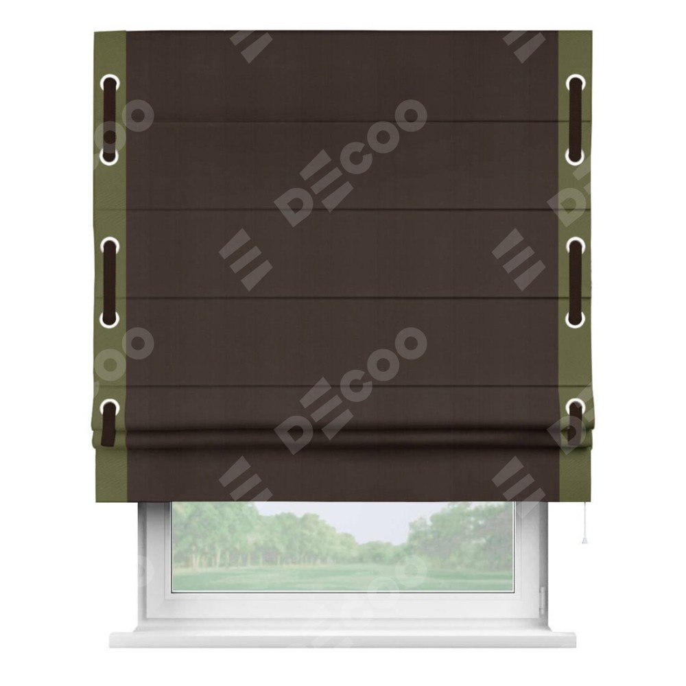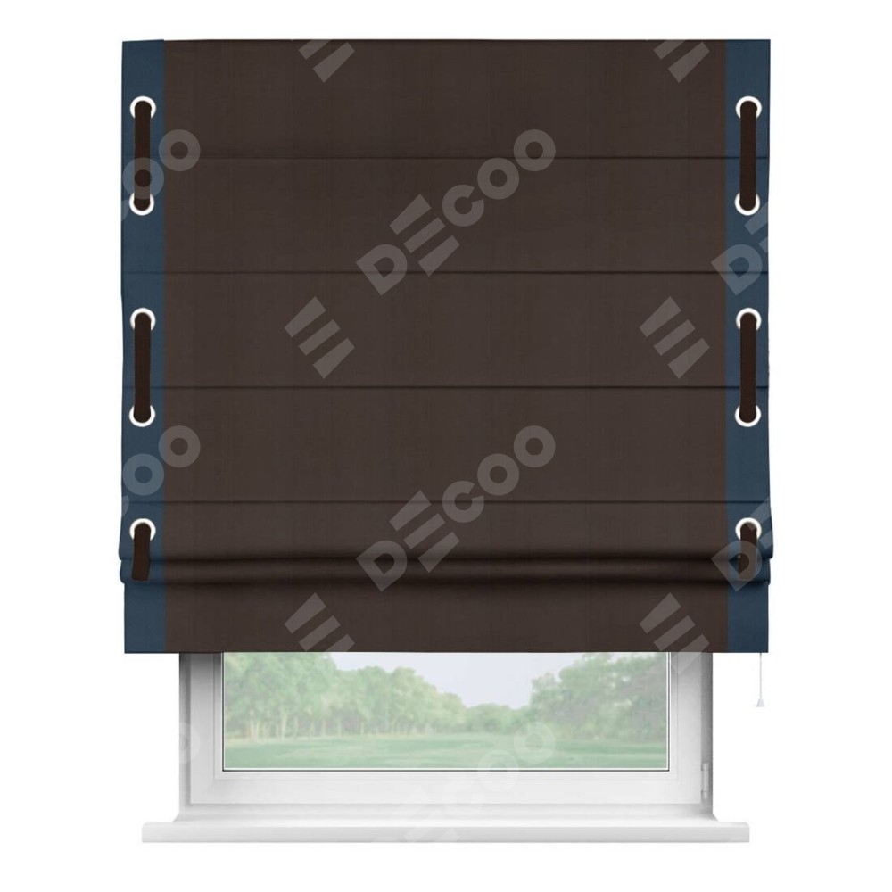 Римская штора «Кортин» с кантом Стрим Дуо (люверсы с пояском), для проема, ткань блэкаут однотонный тёмно-коричневый