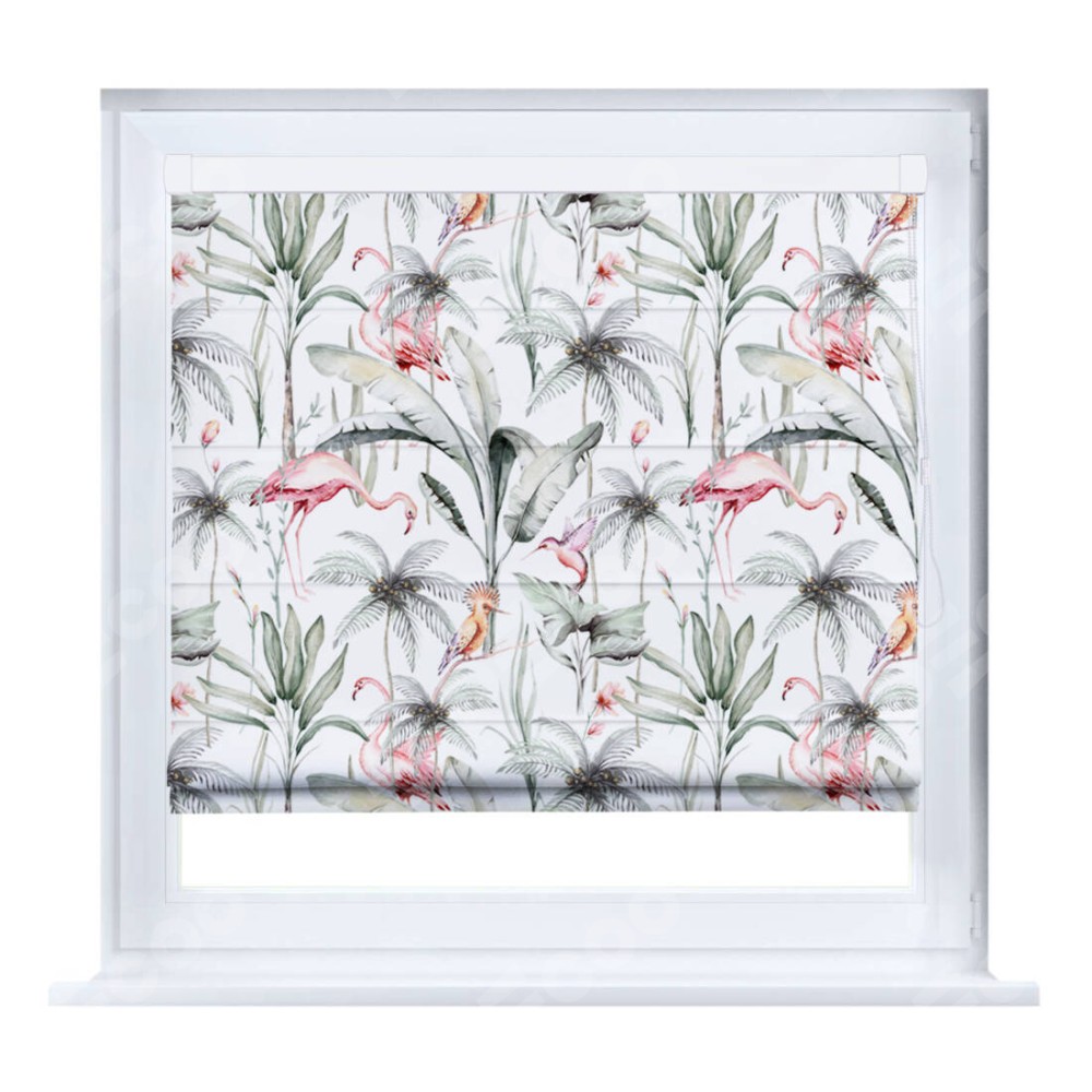 Римская штора «Кортин» на створку «Изящные фламинго»