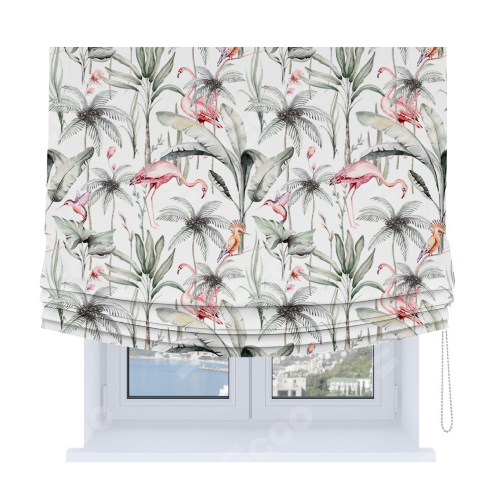 Римская штора Soft с мягкими складками, «Изящные фламинго»