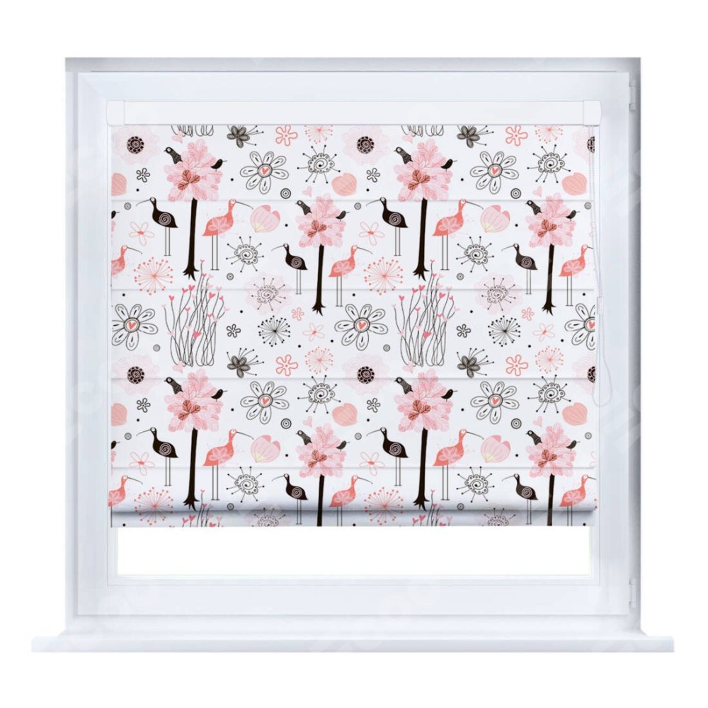 Римская штора производителя «Cortin», устанавливается на створку окна, пошита из ткани блэкаут с нанесением сублимационной печати «Любопытные птички». Штора шьётся по индивидуальным размерам, для данного типа римской шторы возможная ширина от 35 до 150 см., высота до 250 см.