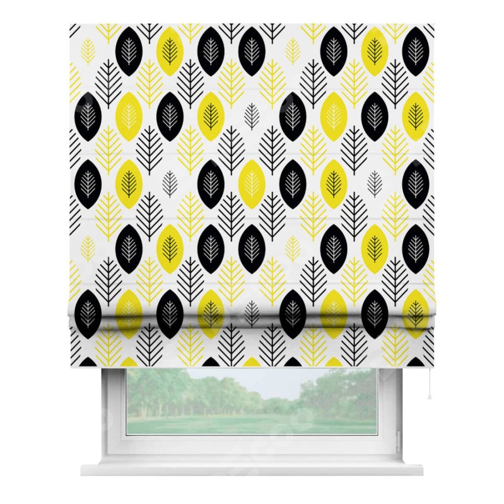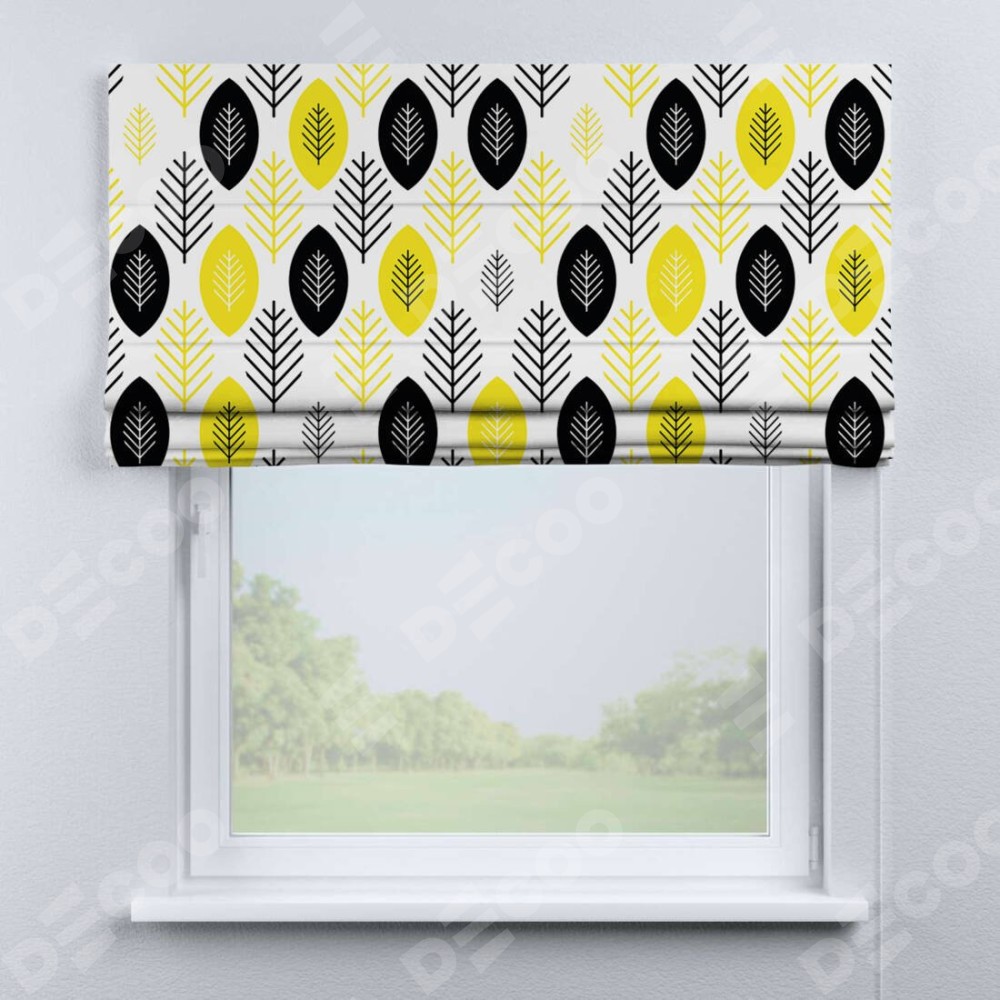 Римская штора производителя «Cortin», используется для проёма, пошита из ткани блэкаут с нанесением сублимационной печати «Черно-желтый модерн». Имеет универсальный механизм и подходит для монтажа: на потолок, на стену и в нишу.