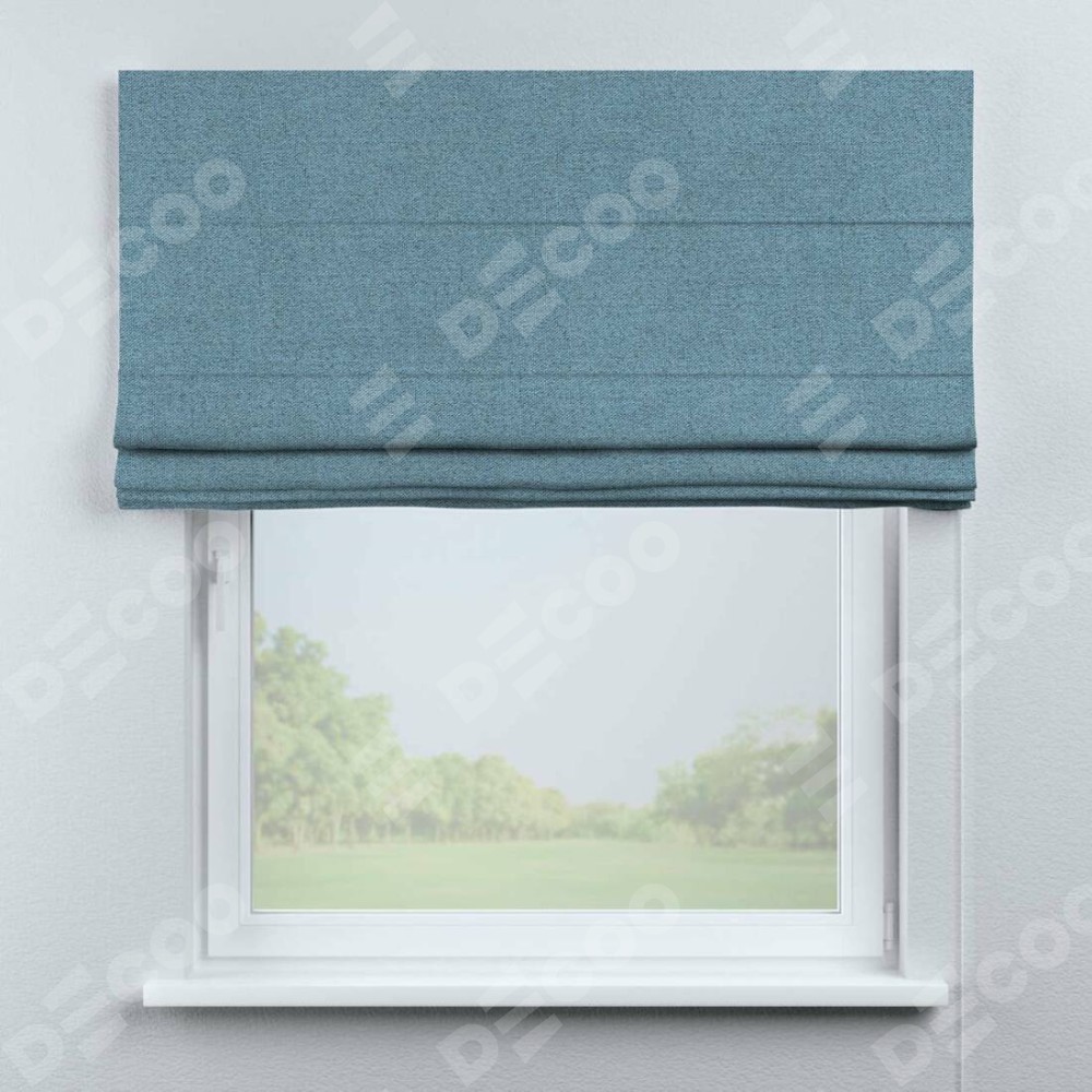 Римская штора «Кортин» для проема, ткань лён блэкаут, голубой