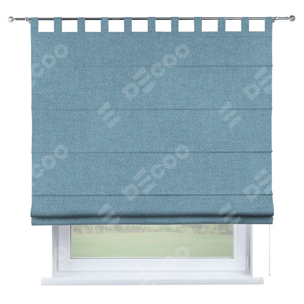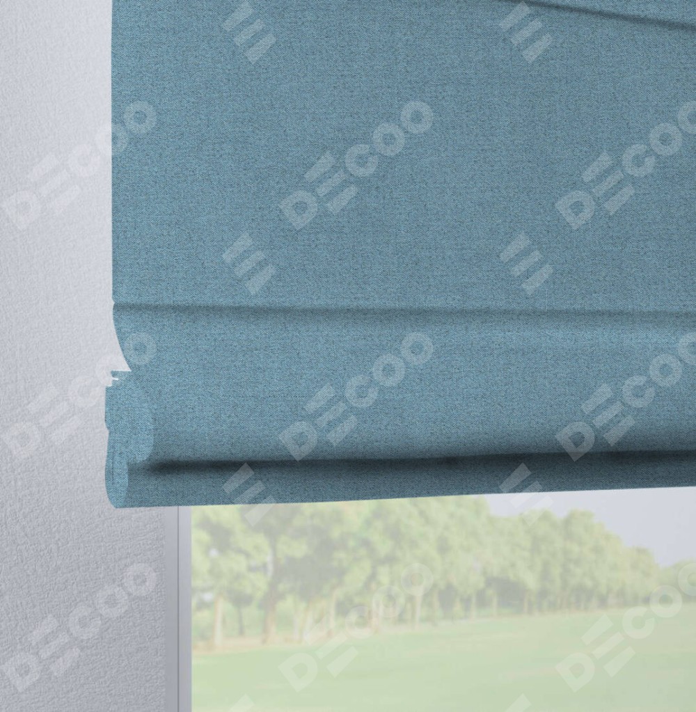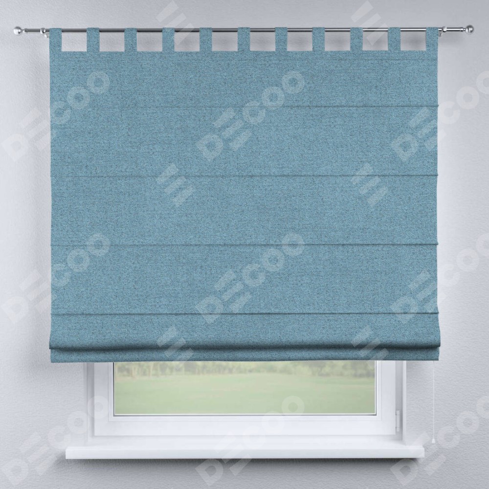 Римская штора на петлях «Кортин», ткань лён блэкаут, голубой