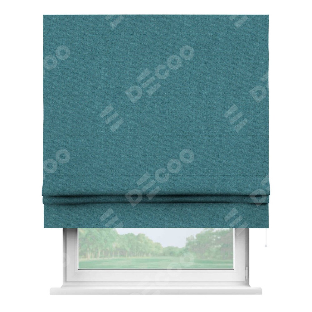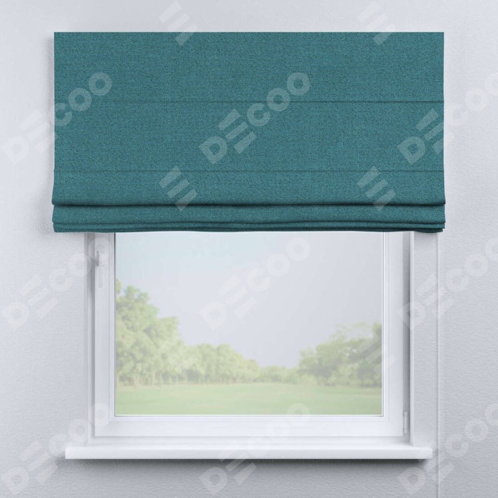 Римская штора производителя «Cortin», используется для проёма, пошита из ткани лён блэкаут синий, артикул ткани 69528. Имеет универсальный механизм и подходит для монтажа: на потолок, на стену и в нишу.