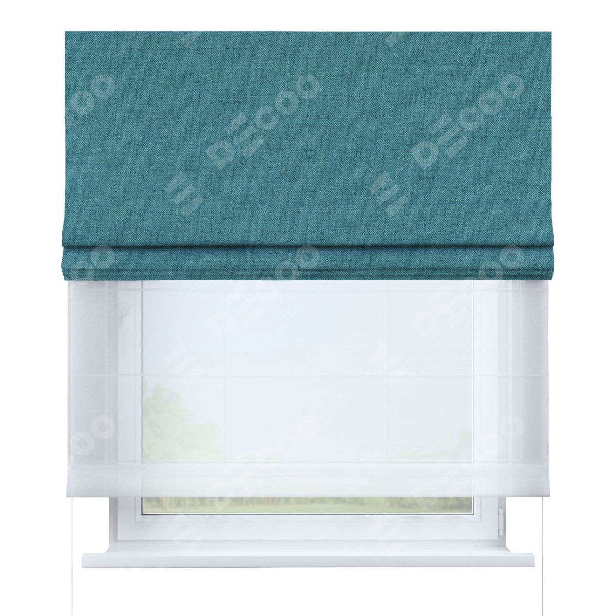Римская штора день-ночь производителя «Cortin», используется для проёма, пошита из двух полотен, с лицевой стороны лён блэкаут синий артикул 69528, вторая ткань тюль (по стандарту комплектуется тюль белого цвета артикул V-01). Имеет универсальный механизм и подходит для монтажа: на потолок, на стену и в нишу. Удобное управление каждой шторой отдельно.