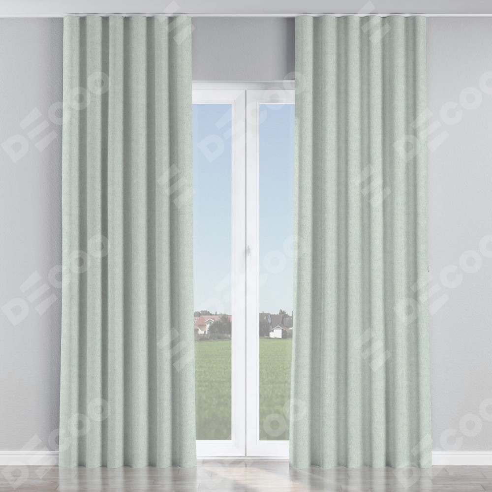 Комплект прямых штор, от производителя «Cortin», пошиты из ткани лён блэкаут белый, артикул ткани 69451. С изнаночной стороны в верхней части штор пристрачивается шторная лента с декоративными складками «Волна». Для создания элегантных складок прямые шторы шьются по стандарту с коэффициентом 1:2 (на 100 см. ширины проёма 200 см. ширины ткани).