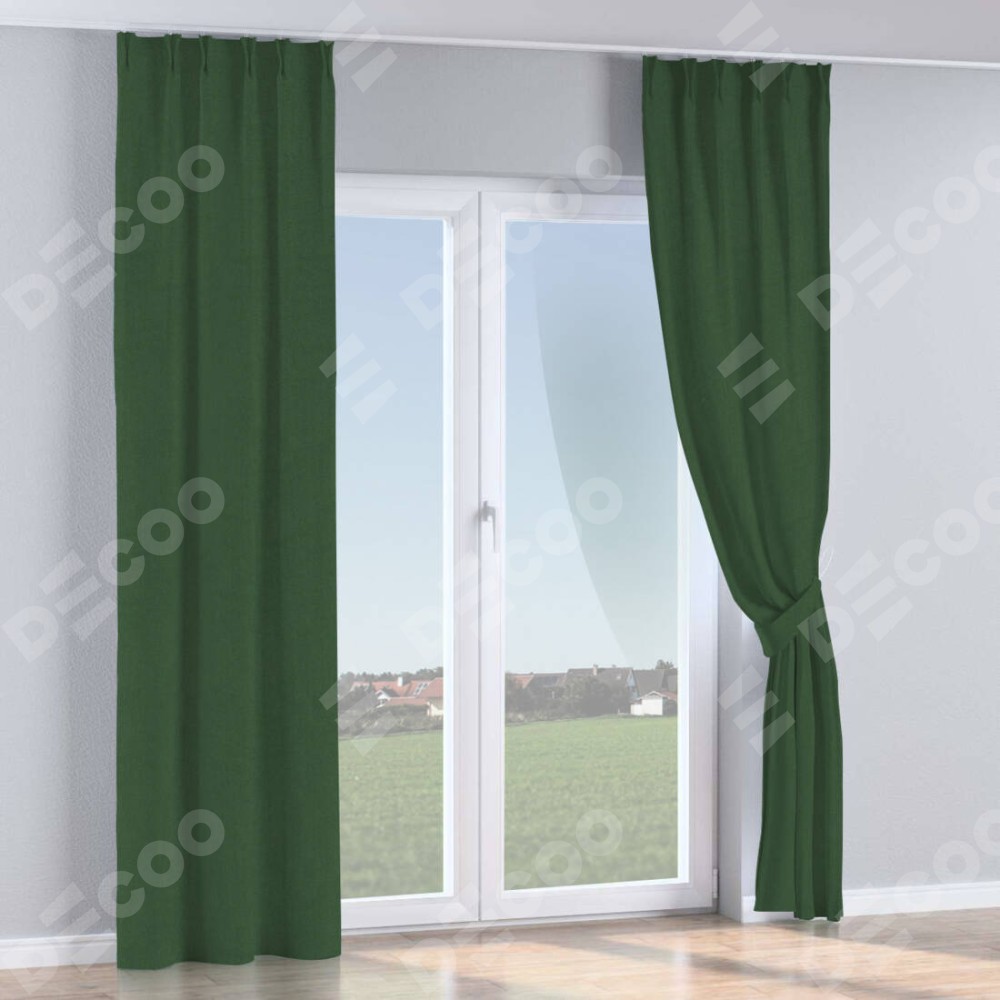 Комплект прямых штор, от производителя «Cortin», пошиты из ткани лён блэкаут зелёный, артикул ткани 69497. С изнаночной стороны в верхней части штор пристрачивается шторная лента с декоративными складками «Кустик». Для создания элегантных складок прямые шторы шьются по стандарту с коэффициентом 1:2 (на 100 см. ширины проёма 200 см. ширины ткани).