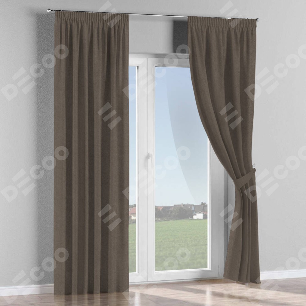 Комплект штор на тесьме «Карандаш», лён блэкаут коричневый