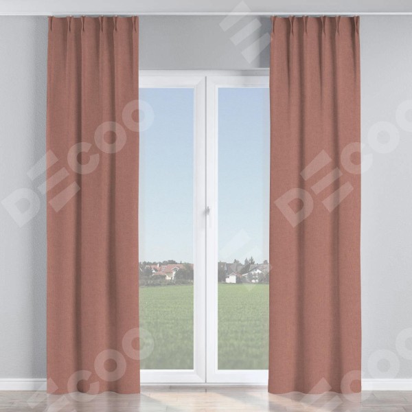 Комплект прямых штор, от производителя «Cortin», пошиты из ткани лён блэкаут розовый, артикул ткани 69575. С изнаночной стороны в верхней части штор пристрачивается шторная лента с декоративными складками «Кустик». Для создания элегантных складок прямые шторы шьются по стандарту с коэффициентом 1:2 (на 100 см. ширины проёма 200 см. ширины ткани).