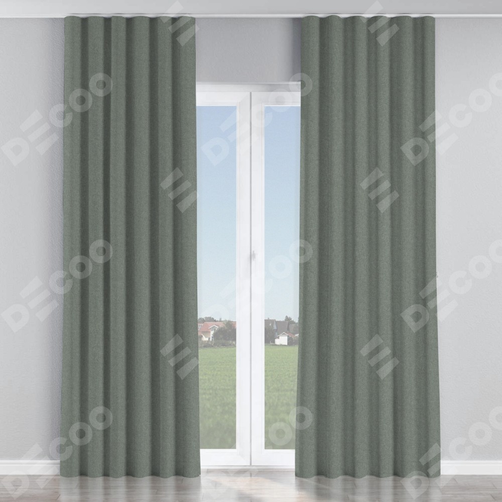 Комплект прямых штор, от производителя «Cortin», пошиты из ткани лён блэкаут серый, артикул ткани 69447. С изнаночной стороны в верхней части штор пристрачивается шторная лента с декоративными складками «Волна». Для создания элегантных складок прямые шторы шьются по стандарту с коэффициентом 1:2 (на 100 см. ширины проёма 200 см. ширины ткани).