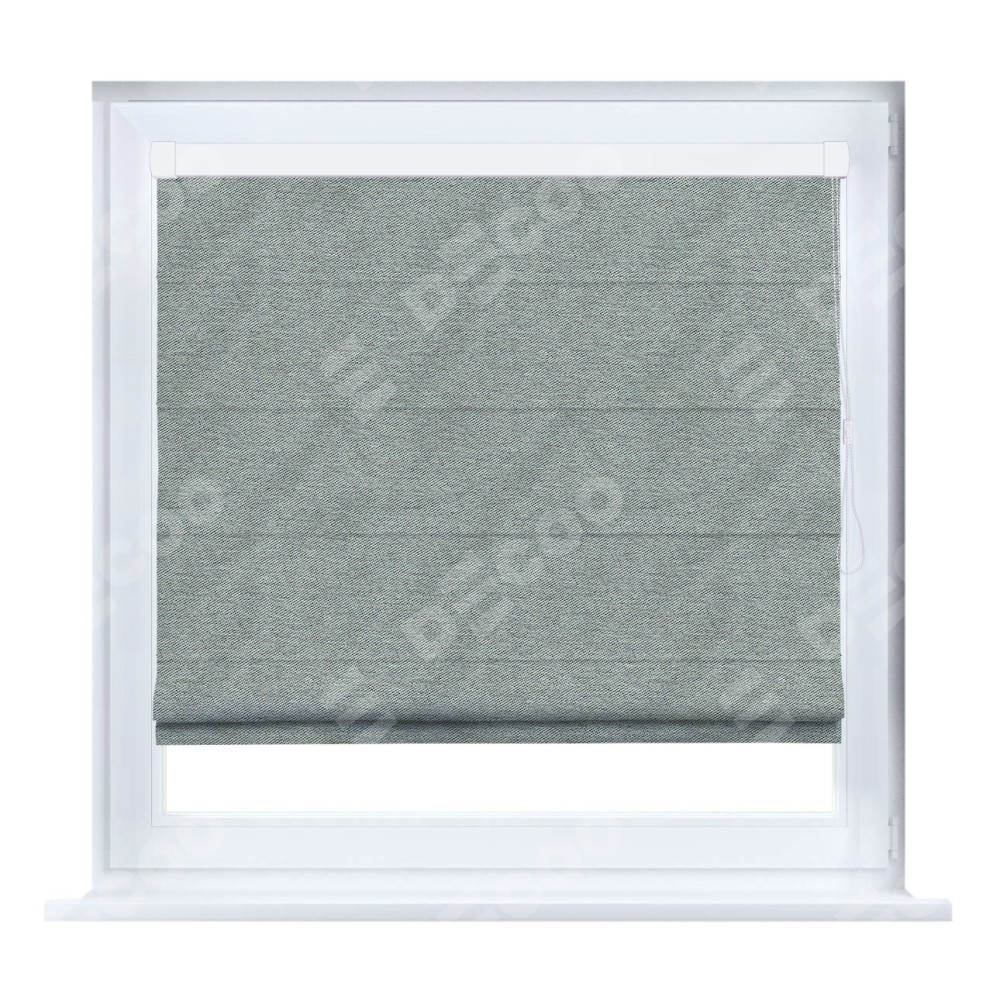 Римская штора кассетного типа, производителя «Cortin», устанавливается только на пластиковые окна и прилегает к стеклопакету, пошита из ткани твид блэкаут светло-серый, артикул 21576.