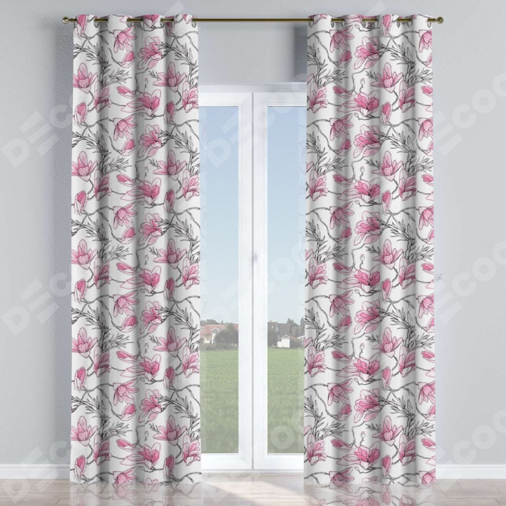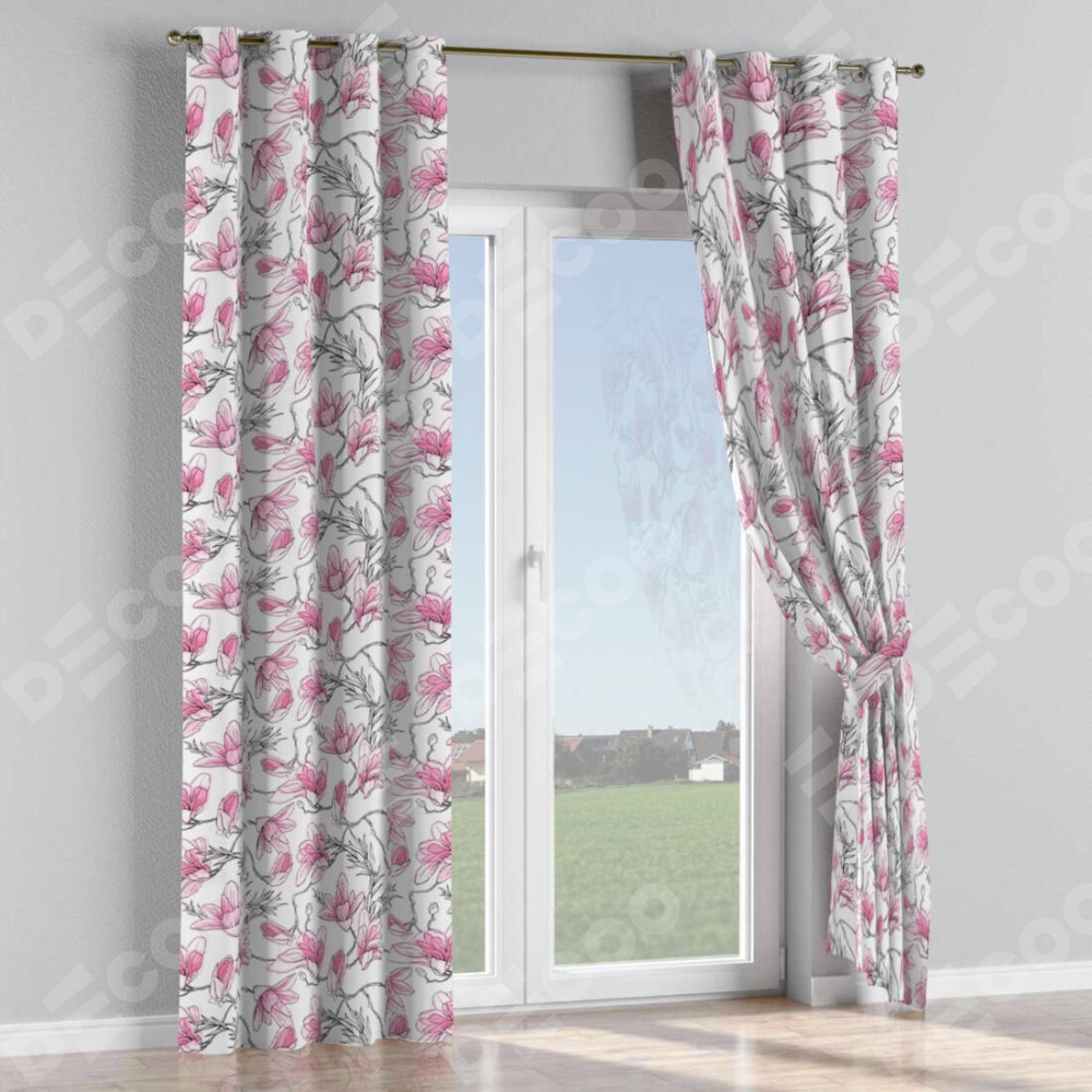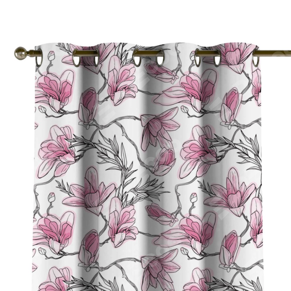 Комплект прямых штор, от производителя «Cortin», пошиты из ткани блэкаут с нанесением сублимационной печати «Цветки магнолии». Данная модель пошита на люверсах, комплектуется на выбор круглым карнизом и подходит для монтажа на стену или потолок. Прямые шторы на люверсах шьются по стандарту с коэффициентом 1/2 (на 100 см. ширины проёма 200 см. ширины ткани), отличительным преимуществом данной модели является простой способ монтажа. Достаточно повесить ее на трубу и штора готова!