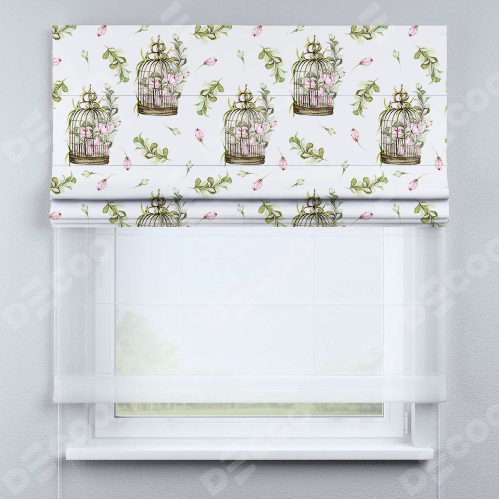 Римская штора день-ночь производителя «Cortin», используется для проёма, пошита из двух полотен, с лицевой блэкаут с нанесением сублимационной печати «Летний прованс», вторая ткань тюль (по стандарту комплектуется тюль белого цвета артикул V-01). Имеет универсальный механизм и подходит для монтажа: на потолок, на стену и в нишу.