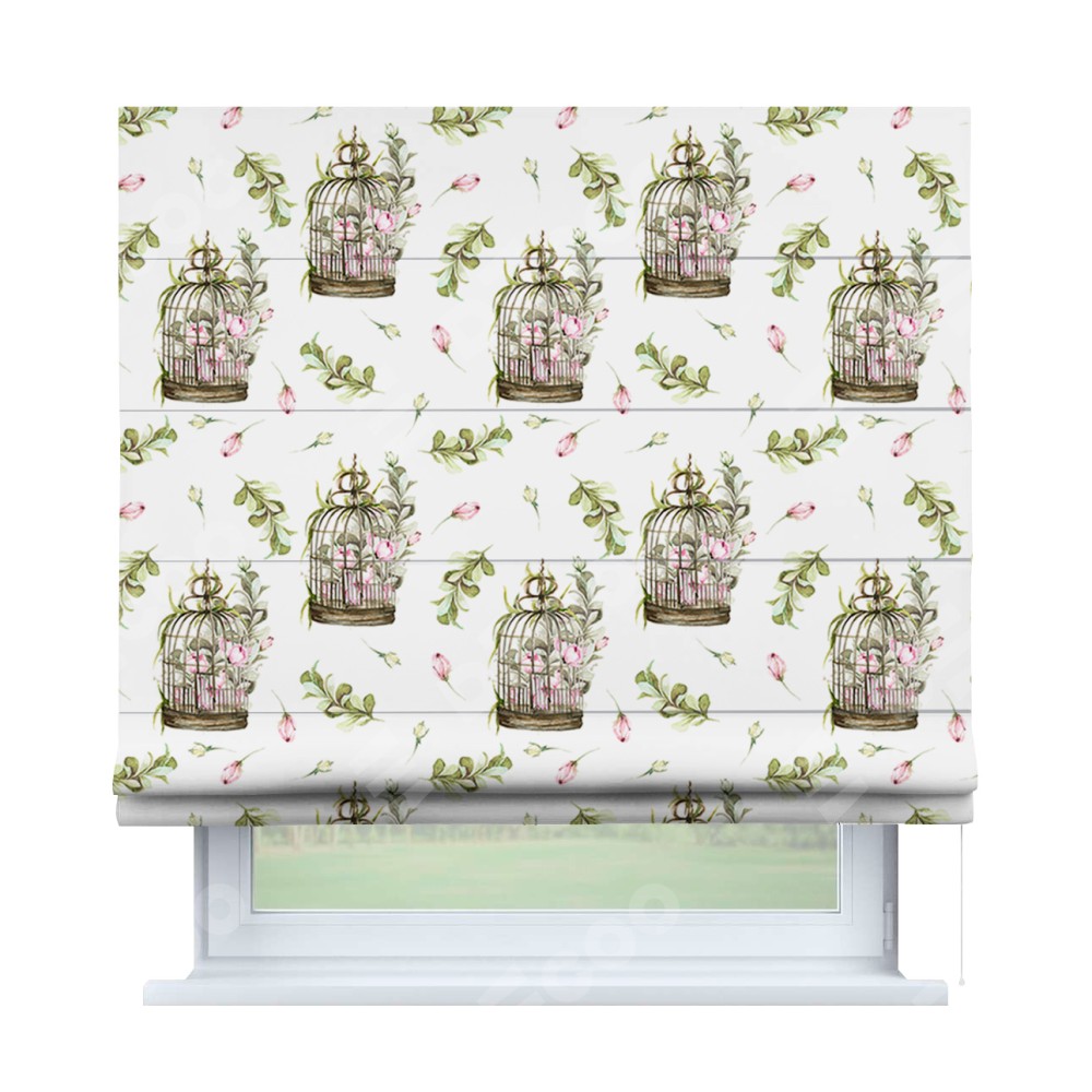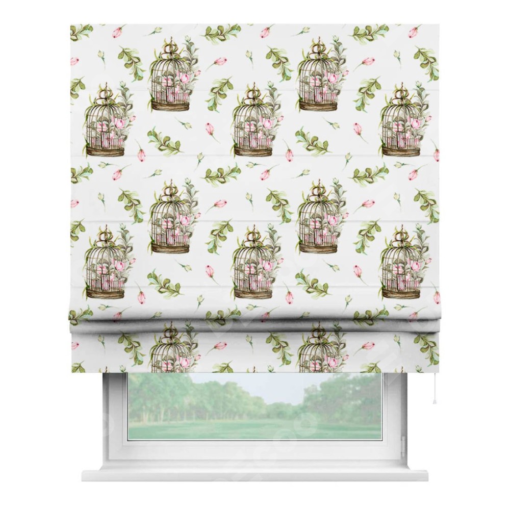 Классическая римская штора представляет собой полотно прикрепленное к карнизу, с обратной стороны полотна вшиты планки. С их помощь при сборе шторы образуются красивые горизонтальные складки.