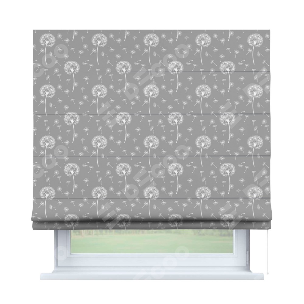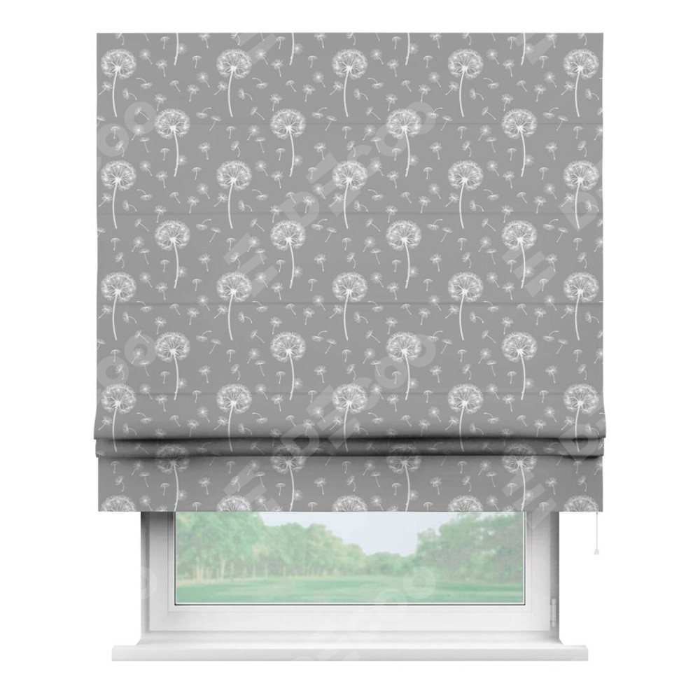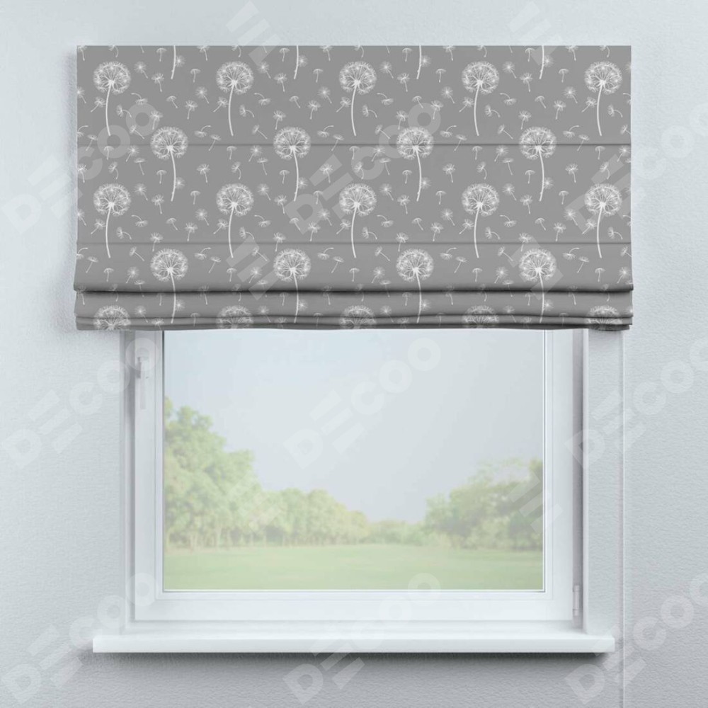 Римская штора производителя «Cortin», используется для проёма, пошита из ткани блэкаут с нанесением сублимационной печати «Одуванчики». Имеет универсальный механизм и подходит для монтажа: на потолок, на стену и в нишу.