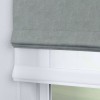 Римская штора день-ночь производителя «Cortin», используется для проёма, пошита из двух полотен, с лицевой стороны твид блэкаут светло-серый артикул 21576, вторая ткань тюль (по стандарту комплектуется тюль белого цвета артикул V-01). Имеет универсальный механизм и подходит для монтажа: на потолок, на стену и в нишу.