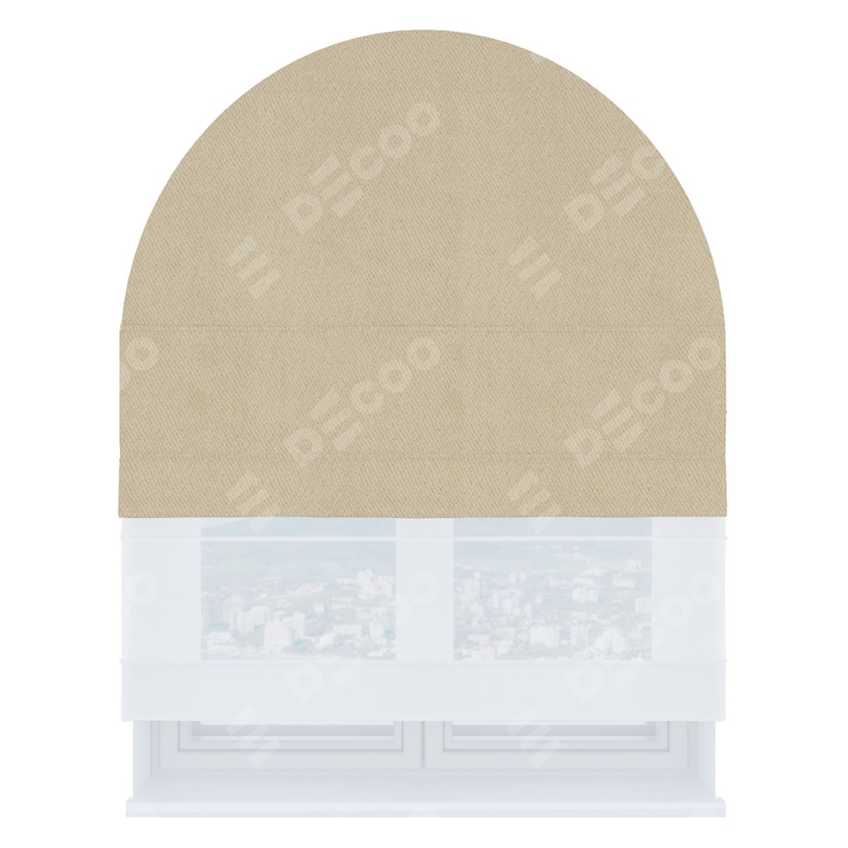 Римская штора день-ночь производителя «Cortin», используется для арочного проёма, пошита из двух полотен, с лицевой стороны блэкаут однотонный кофейно-бежевый артикул 12095−1, вторая ткань тюль (по стандарту комплектуется тюль белого цвета артикул V-01). Штора шьётся по индивидуальным размерам, для данного типа римской шторы возможная ширина от 60 до 300 см. Удобное управление каждой шторой отдельно.