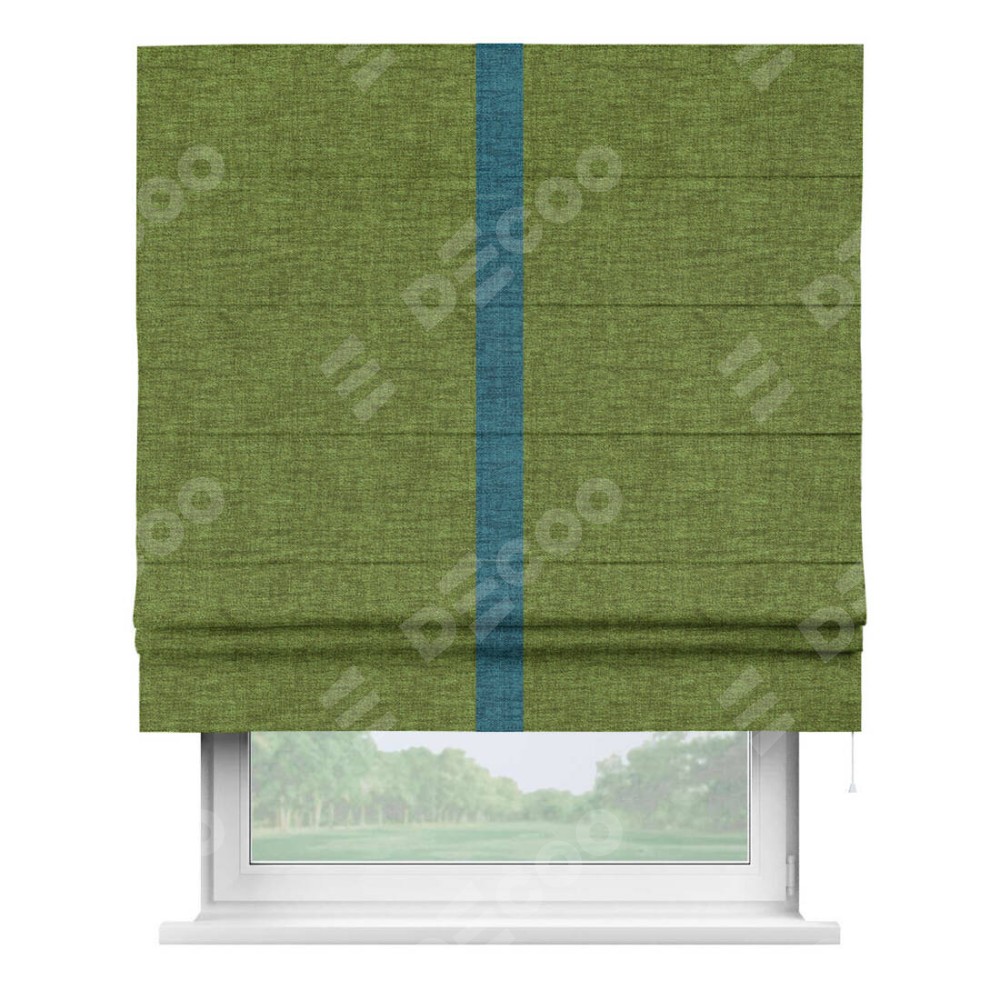 Римская штора «Кортин» с кантом Хайвэй, для проема, ткань рогожка димаут, салатовый